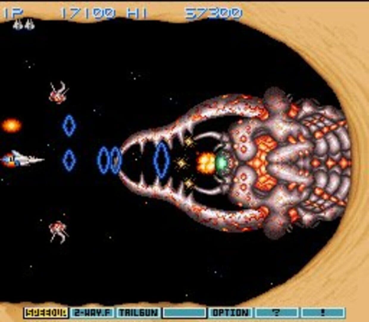In the darkest reaches of infinite space, pure evil lies in wait ... The Dark Forces led by the god of destruction, Bacterian, prepare to launch a massive onslaught against the planet Gradius. Possessing unstoppable power, the Dark Forces threaten to plunge the Universe into total war and complete annihilation. Their invasion force smashes the Gradius defenses, and the surrounding planets soon fall like dominoes. Now Bacterian's evil grasp reaches for the heart of the resistance...planet Gradius itself... To counter the oncoming threat the United Gradius World Forces gather all their fighter craft. Half of them form a defensive net - the other half a strike team. But they are badly outnumbered and The Dark Forces easily tear through their thin frontline. No fighters survive the slaughter.... In a last gasp move, the United Gradius World Forces send out two fighters, previously considered too dangerous for combat missions: The InterDimensional VIC VIPER fighters. The Fighters take off for the heart of darkness to join the fray that will decide the fate of the Universe...