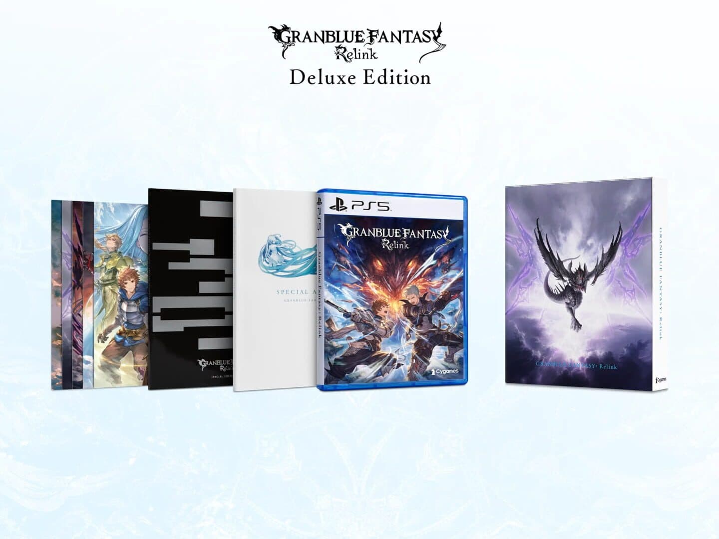 Granblue Fantasy: Relink - Deluxe Edition Content: • Deluxe Edition Box • Granblue Fantasy: Relink Game • Starter Item Pack (Glitterstone (S) x30, 500 MSP, Fortitude Crystal (S) x50) • Character Color Pack 1, 2, and 3 • Weapon: False Sword of the Apocalypse • Official Artbook • Soundtrack CD • Postcard Set
