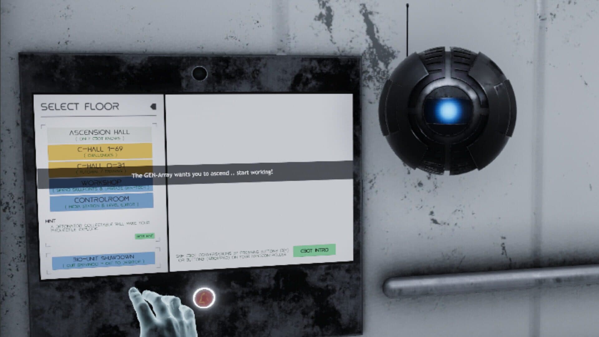 Gravinoid is a fast-paced sci-fi VR action throwing game set in a dystopic future where humanity is falling and AI is prevailing. You - clone 7235 - have to work your way up towards the ascension room where your ultimate test awaits!