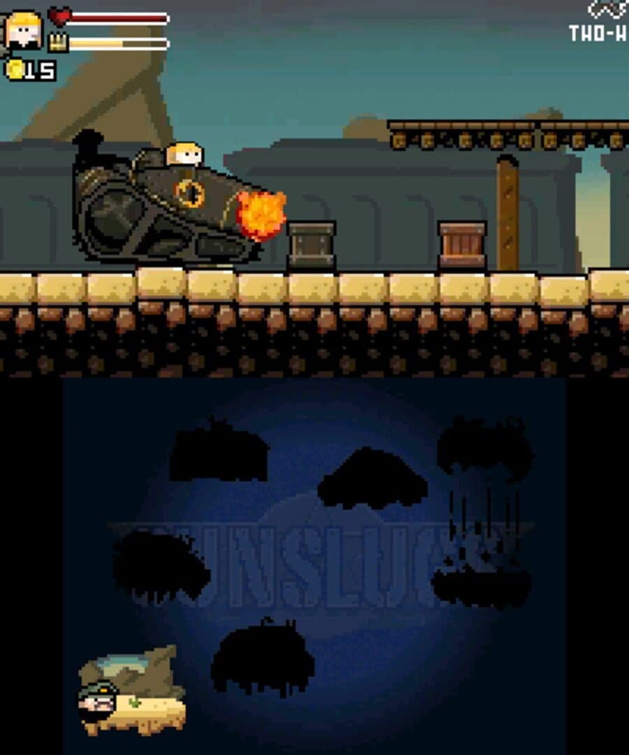 Gunslugs 2 takes the action chaos genre further than ever before... into space and beyond. Rockets, tanks, choppers, train crashes, huge metal robots, aliens and hordes and hordes of the Black Duck army minions ! It's fun, over the top, action movie parody in a not-so-serious way