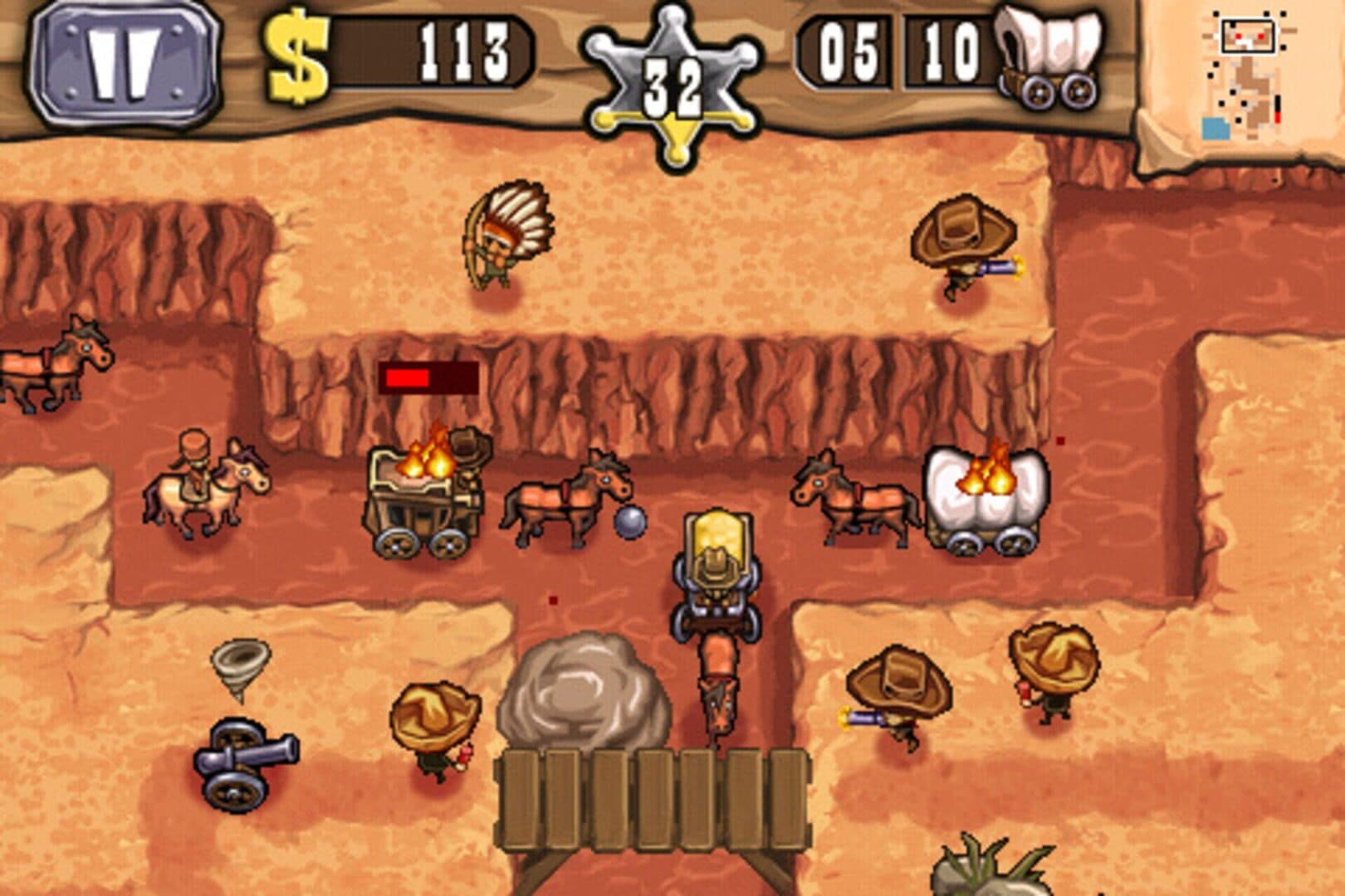 Guns'n'Glory is a 'tower defense' game set in the Wild West. In it you must ambush the carts that are carrying treasure and steal all the loot, you can then use it to improve your military units among other things.