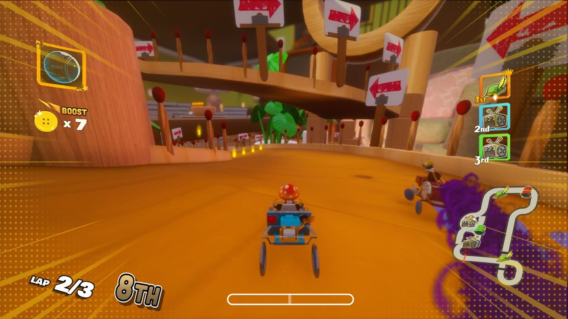 HaberDashers is a console-style arcade (kart) racer for the PC in which players control miniature humanoid inhabitants of an everyday home, racing past outsized household items and through rooms as they compete against human and AI opponents with both driving skills and item pick-ups.
