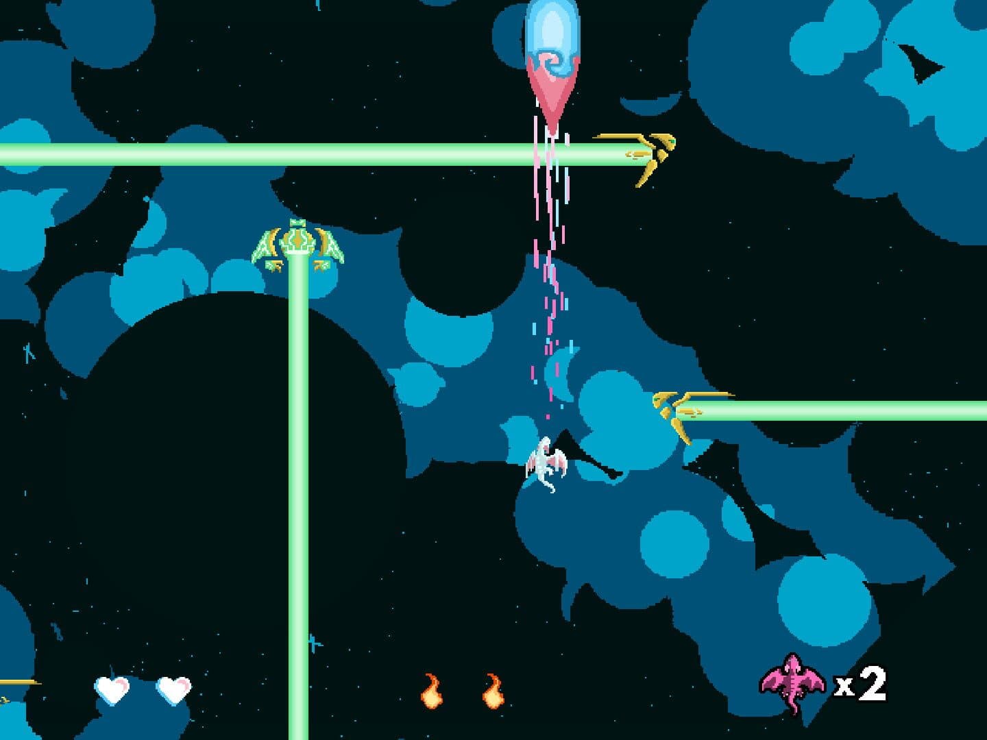 You are Saffi a hyperspace dragon, and also a lesbian. Your partner, Eleza, had been taken by the venture. If you want her back, you'll need to fly to the far side of space and burn anything that gets in your way. Are you up to the challenge?