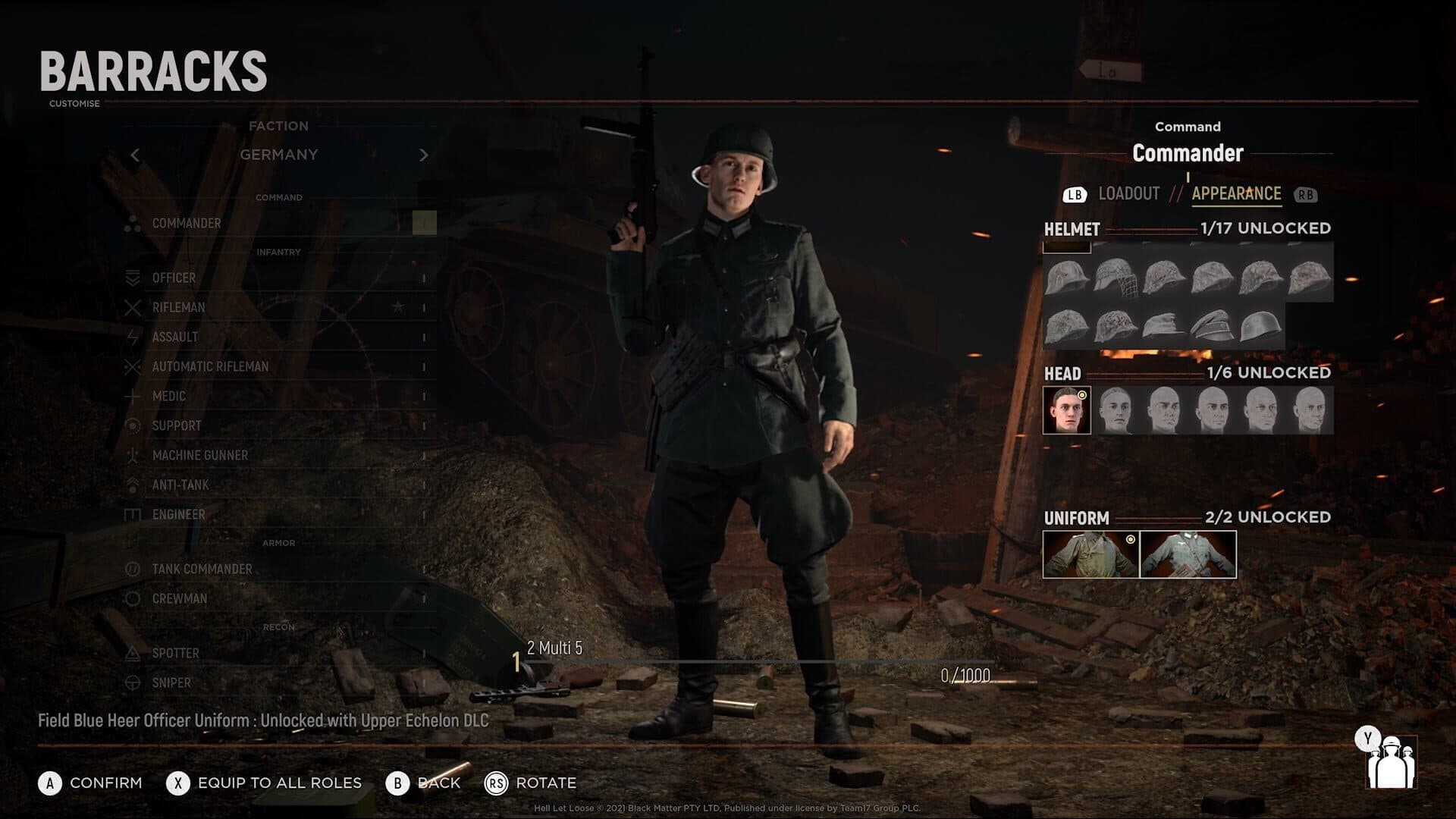 Unlock access to join the Upper Echelon and take command of the front lines with these unique uniforms for the Commander Role. Show off your rank and station with the "Field Blue Heer Officer" uniform for the German forces or stride out in your "Summer Service" uniform for the US.
