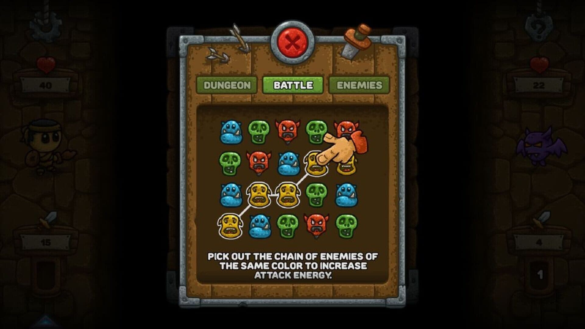 Fight in dark dungeons with skeletons and monsters.