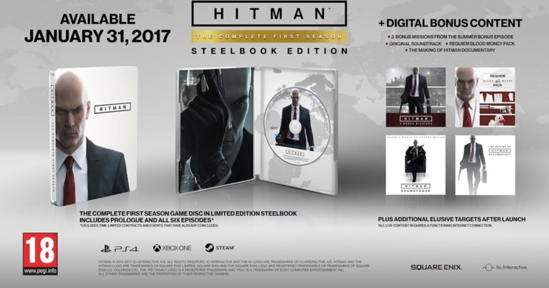 Released in a day one edition SteelBook, HITMAN: The Complete First Season will deliver the ultimate physical version of the game, with over 100 hours of gameplay. Featuring all of the Season One locations and episodes from the Prologue, France and Italy to Morocco, Thailand, USA and Japan. Included with HITMAN: The Complete First Season box is bonus downloadable content: 3 Bonus Missions Pack which includes The Icon and A House Built on Sand missions, plus the brand new upcoming Landslide mission. Original Soundtrack featuring the original game score. The ‘making of’ HITMAN documentary charting the journey from showing the game to our fans for the first time before E3 2015, through to the digital launch in 2016. HITMAN Requiem Blood Money Pack which includes the signature Blood Money white suit, white rubber duck and chrome ICA pistol. The PlayStation 4 version includes the 6 additional exclusive The Sarajevo Six missions. HITMAN: The Complete First Season features all of the locations, challenges, opportunities, Escalation Contracts created by the studio and Contracts created by the community. And it will give access to all upcoming Elusive Target live game events taking place after January 31st.