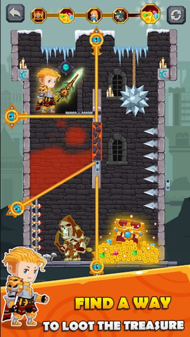 How to Loot is a puzzle game where players solve pin-pulling challenges to guide a knight through various obstacles. The goal is to rescue a princess, defeat monsters, and collect treasures by strategically pulling pins in the correct order. Each level requires logical thinking to avoid traps and enemies.