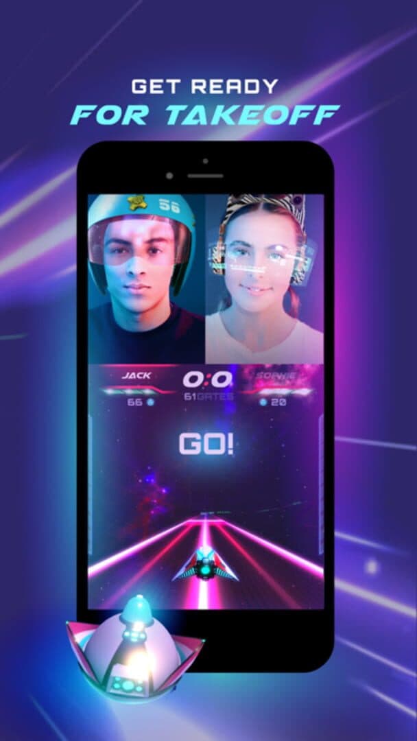 "Hyperspeed is a thrilling and revolutionary racing game. The live video brings players together for a face to face battle. They put their Gamefaces on and communicate through live video as they try to prevail. The pilots can play against friends or anyone in the world and take part in an interplanetary battle.They will need nerves of steel to control their starships as the speed increases and increases until eventually one of the players crashes. Real-Time Gameplay Go head-to-head against your friends or anyone around the globe in real-time. You can even talk to your opponents while you try to outrun them. Have a friendly conversation with people you just met or even try to effect your opponent’s concentration. Power-Ups Use Power-ups to add to the excitement of the game and come with great advantage. Power-ups can come to your aid – but you can also use them to attack your opponents’ Starship. Gamefaces Express yourself with one of our stunning AR Gamefaces. From a collection of dozens Gamefaces, you are sure to find one that matches your style. Missions & Ranks With our Missions you will also have the opportunity to compete against yourself. Complete the missions and rise through the ranks. Each rank even comes with an impressive title. Leaderboards You are not only going head to head against a single opponent, you are competing against the whole galaxy. With our separate leaderboards you can easily follow the progress of your friends as well as local racers from your city. Chat Between games you can chat with your friends and even schedule your next race."