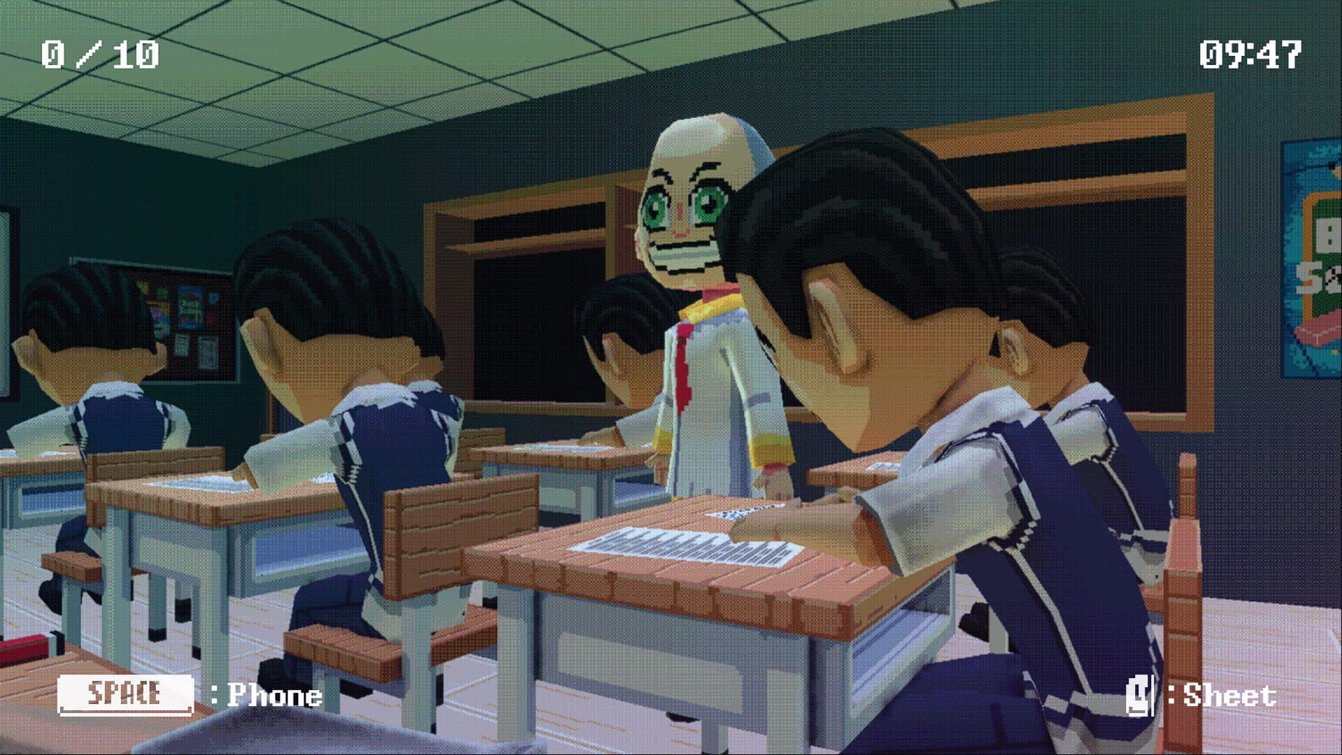 This game places players in the role of a student attempting to cheat during school exams at Redstone Middle School while avoiding detection by vigilant teachers. Players must use their phone to find answers to exam questions across four days, each featuring different supervising guards with varying levels of awareness. The gameplay focuses on stealth mechanics and timing as players balance between checking their device and maintaining the appearance of legitimate test-taking. The experience is designed to be enhanced with headphones for immersive audio cues that signal teacher proximity and detection risk.