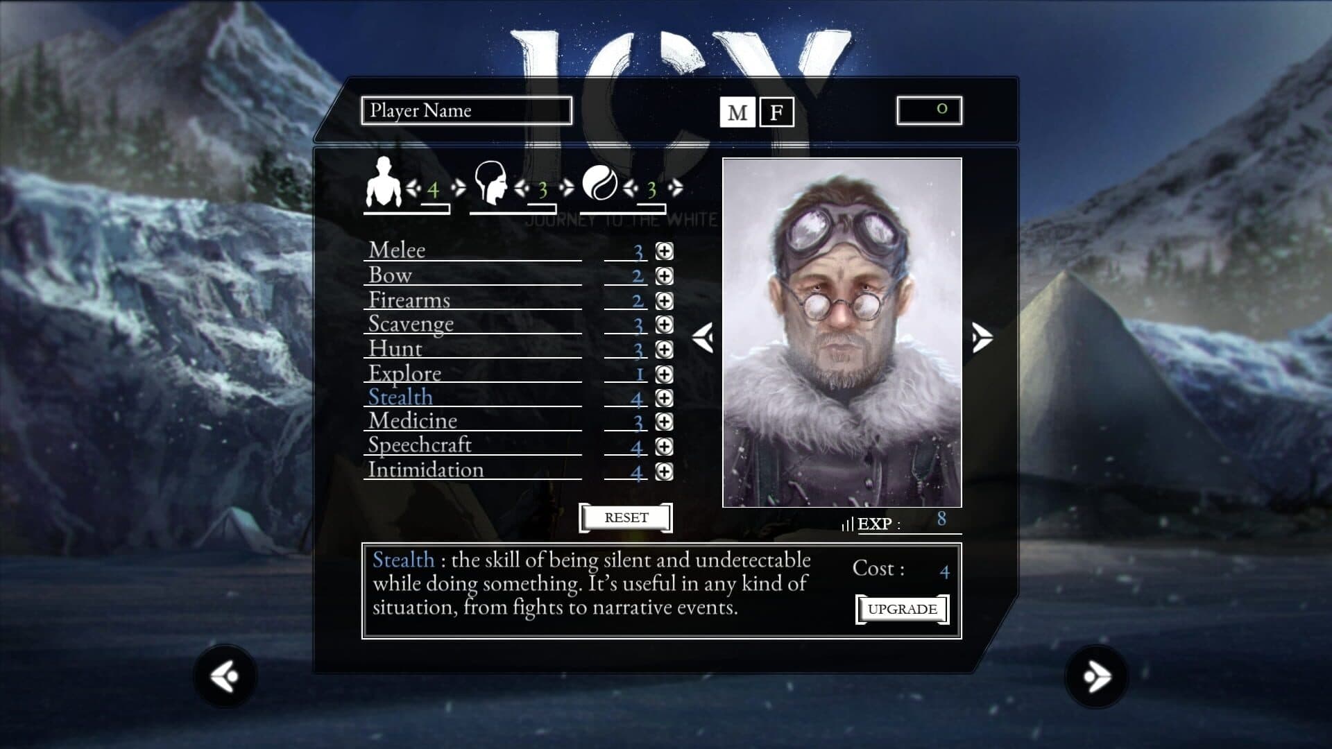 ICY is a narrative-driven post-apocalyptic survival RPG set in a new Ice Age where your life and the lives of your followers hang on every decision you make. Create your own character using a detailed stats system that influences your abilities then begin your journey of survival across a frozen world.