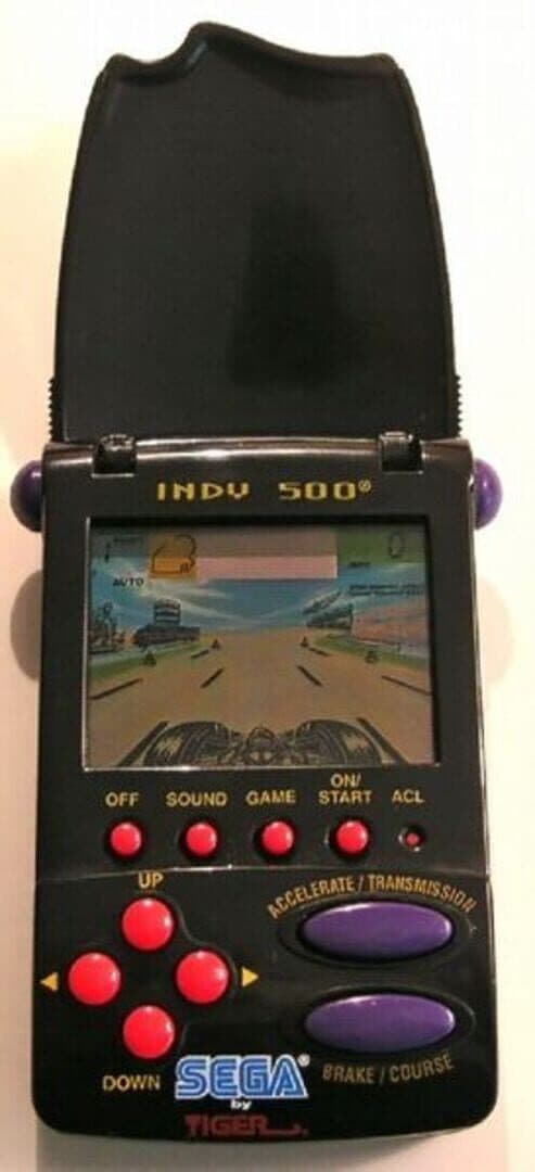 The LCD version of Indy 500 is a watered-down version of the arcade game Indy 500 created by Tiger Electronics. It was released as part of the Pocket Arcade series in 1996. The following year it was re-released as Sega Raceway, presumably as the Indy 500 license had expired.