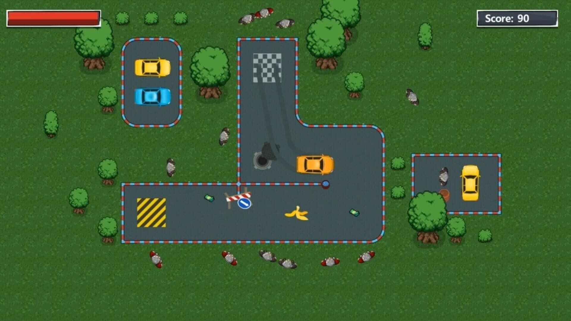 "Inexperienced Driver" is a top-down arcade driving game. The player has to drive from point A to point B and, if possible, collect all the banknotes on the road while avoiding obstacles.