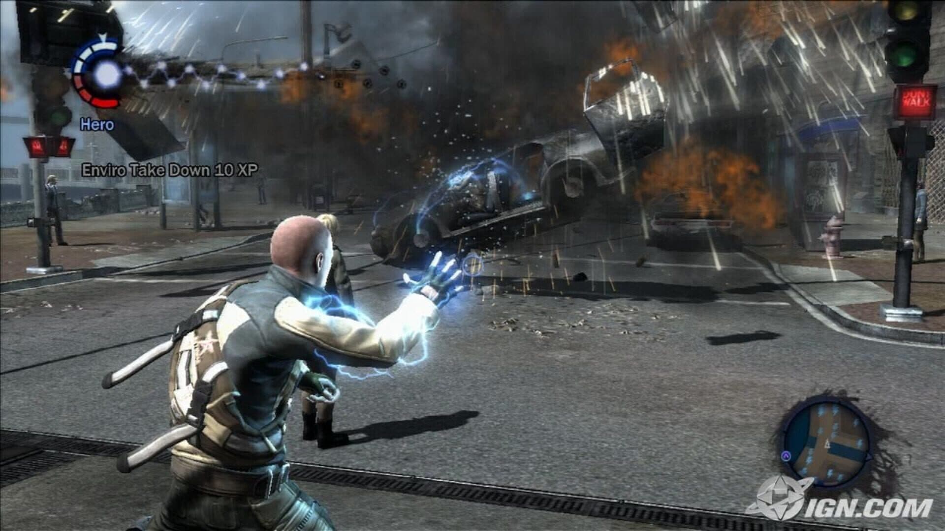 InFamous is set in Empire City, a fictional metropolis based on New York City, consisting of the Neon District, where most of Empire City's businesses are concentrated, the Warren, a slum dependent on international shipping activity, and the Historic District, the location of the city government. Each district has an elevated train system and a separate power grid. The premise of the game is built around the partial destruction of the Historic District by a mysterious explosion, followed by a viral epidemic that forces federal authorities to seal the only bridge leading to the mainland. A rise in violent crime overwhelms the police, resulting in societal collapse. Characters The protagonist is Cole MacGrath (Jason Cottle), a courier who is accused of triggering the explosion, which leaves him with the ability to absorb and project electricity. His closest friend, Zeke Jedediah Dunbar (Caleb Moody), allows Cole to hide on his rooftop, despite his envy of the former's powers. Trish Dailey (October Moore), Cole's girlfriend, abandons him out of anger over the death of her sister Amy, while most of Empire City's residents view him as a terrorist. While attempting to escape the city with Zeke, Cole is contacted by FBI agent Moya Jones (Kimberli Colbourne), who offers to clear his name if he helps her find her husband, fellow agent John White (Phil LaMarr). White vanished while investigating a group known as the First Sons, who are believed to be responsible for orchestrating the explosion. While working to restore order in the Neon District, Cole encounters Sasha (Jessica Straus), a former member of the First Sons, who like Cole is a "Conduit", an individual given powers by the First Sons. Using her ability to control the minds of others via a tar-like substance, she has formed a gang known as the Reapers. Meanwhile, the Warren has been overrun by the Dust Men, an army of homeless militants led by Alden Tate (also Jason Cottle), the original leader of the First Sons, who possesses telekinesis. Kessler (Sam A. Mowry), the true antagonist of the game, is a shadowy figure who controls the First Sons and who takes an obsessive interest in Cole and his powers. Story While the basic story of InFamous remains unchanged whether the player opts for the "Good" or "Evil" karma path, there are some story elements that change depending on Cole's choices. While making a delivery in the Historic District, Cole is instructed to open the package. In doing so, he activates a device known as the Ray Sphere, leveling six city blocks and nearly killing him. Rescued by Zeke and Trish, he teaches himself to control his emerging powers. After using them in public to fight off a Reaper attack, the locals turn against Cole after he is accused of triggering the explosion, forcing him into hiding. He and Zeke engineer an assault on the sealed bridge, only to be ambushed by government forces. Separated from his friend, Cole meets Moya, who persuades him to return and find John. With her help, Cole restores the district's power supply, earning the attention of Sasha, who lures him into her underground lair. Cole defeats her, but she is abducted by the Sons before he can make her talk. Trapped in the Warren, Cole assists what remains of the police in battling the Dust Men. Alden is arrested and imprisoned, but Zeke's incompetence in guarding him allows the Dust Men to free him and massacre most of the officers. With Alden planning to reactivate the Sphere, the two patch things up and confront him, with Zeke ending up in possession of the Sphere. Giving in to his temptations, Zeke deserts Cole and takes the Sphere to Kessler. With Alden on a murderous rampage towards the Historic District, Cole defeats him once and for all in a bridge battle. Before jumping in the water, Alden reveals that Kessler exiled him from the First Sons. White, who turns out to be an NSA agent with no connection to Moya, reaches out to Cole and explains that the Ray Sphere is designed to consume bio-energy from thousands of lives and transfer it to a single user, making them a Conduit. During their search for the Sphere, Kessler publicly challenges Cole to stop a series of bombings across the district, ending with him being forced to choose between saving Trish or her colleagues. Regardless of which choice he makes, Cole fails to keep Trish from dying. Determined to punish Kessler, Cole tracks the Sphere to a remote pier, where he must decide whether to destroy it or use it to become even more powerful. Regardless, the Sphere releases the last of its energy, killing John before disappearing into a vortex.