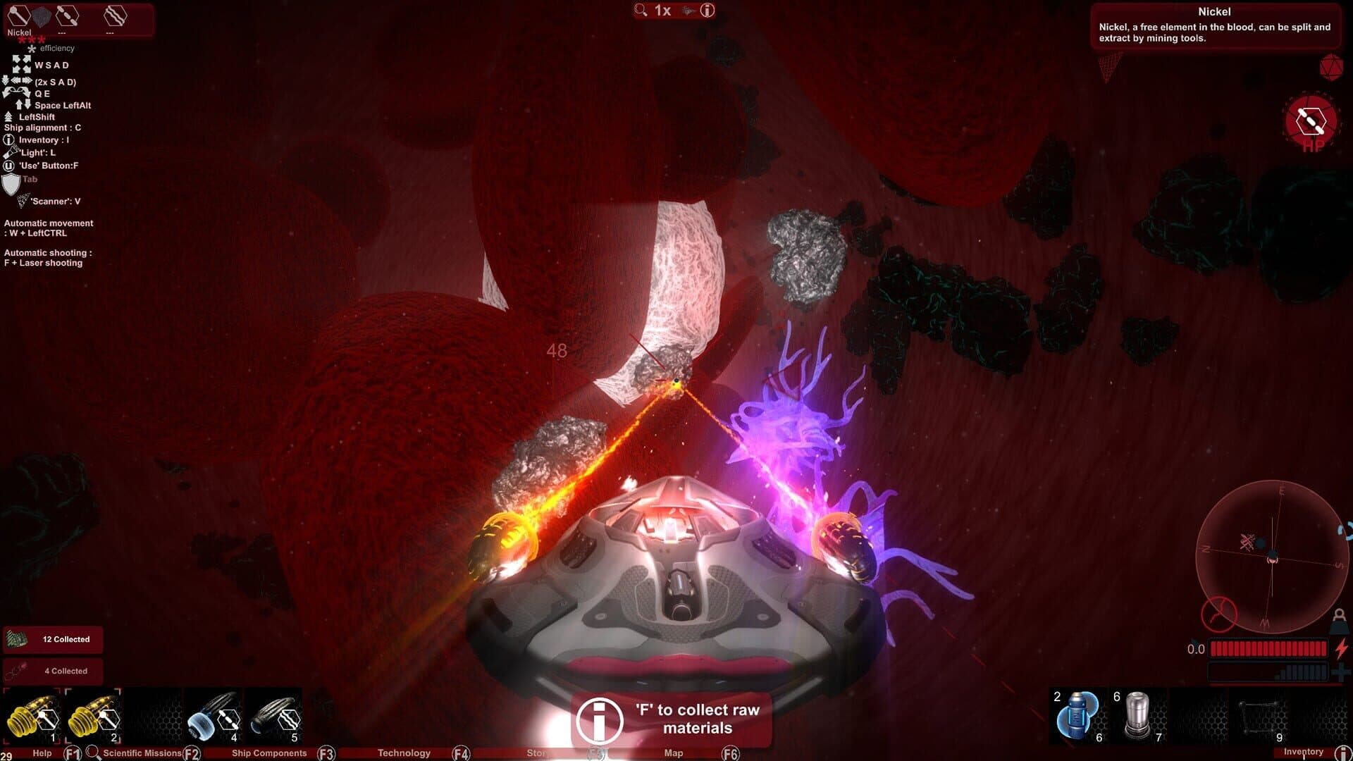 STORY You and your ship have been shrunk and injected into the human body. There is a cure for cancer inside, but it’s not working as it should. You need to find out what’s wrong and fix it. The patient is dying quickly, and you are the last hope of humanity to eradicate this horrible disease once and for all. GAMEPLAY Your ship needs fuel and air to keep the systems running. You can harvest resources from dead microbes or mine minerals from the blood. You can craft weapons, mining lasers, shields, engines and other ships components. You can also upgrade your ship software to increase speed and energy FIGHTING Your ship can use its shields to block the enemy attacks or use evasive maneuvers to escape. You have cannons and ray weapons available to fight. Laser mining tools enables you to split and collect minerals. In time you will learn to craft even more advanced weapons to fight stronger enemies and with improved mining lasers you will collect resources faster. LOOTS You can find crashed ships from the previous missions inside of the human body. Those wrecks could contain resources, special items, enhanced weapons and ship upgrades. BUILDING Building system is like a building kit. You can craft and build bases to store your resources, to repair your ship and to instantly teleport among bases. You can also build automated factories to manufacture advance items and weapons.