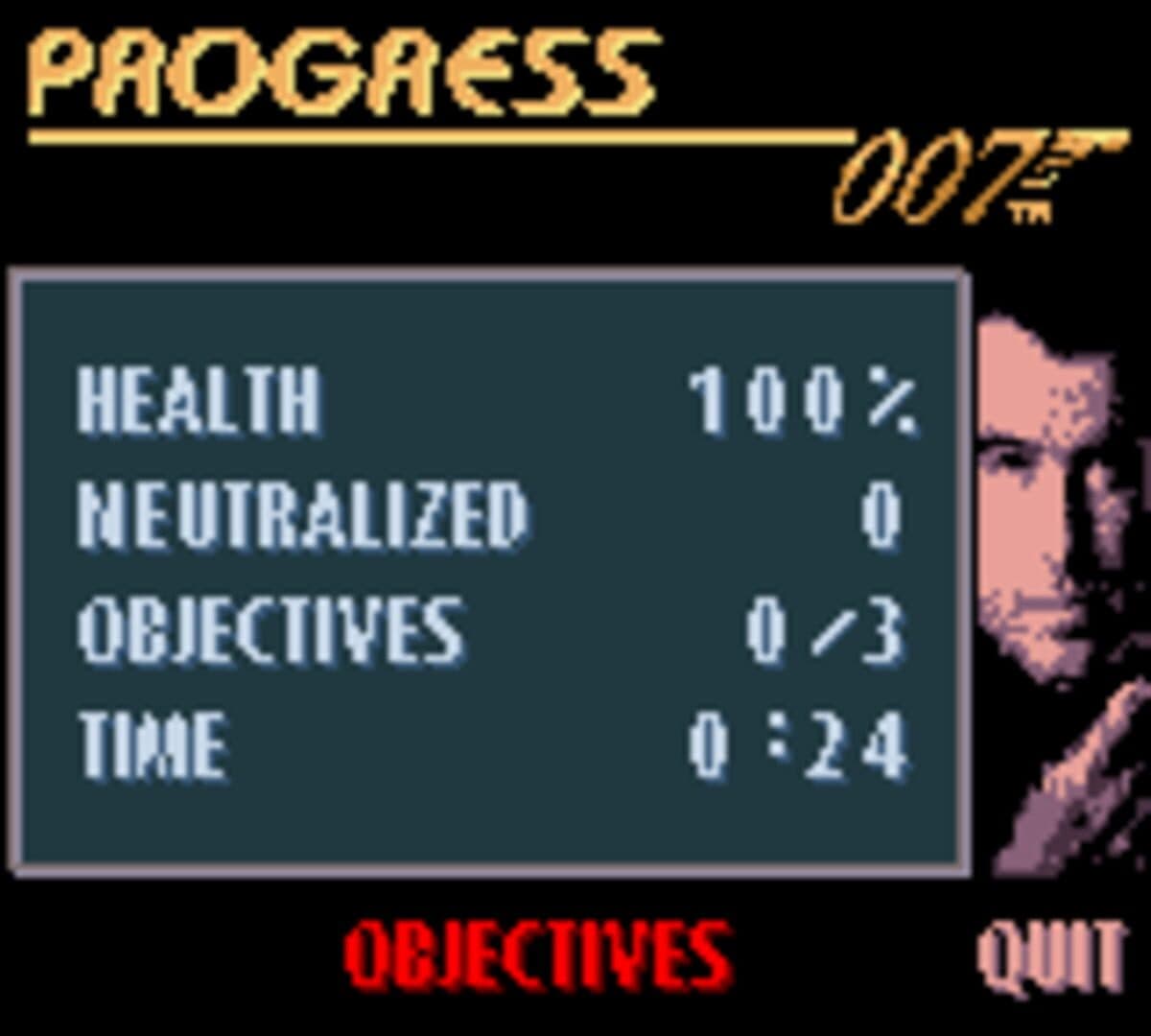 James Bond 007: The World Is Not Enough is based off of the 1999 James Bond film of the same name. In contrast to the Nintendo 64 and Playstation versions, this game only has eight missions and features a 2D overhead view instead of a 3D first-person. There is no multiplayer, no difficulty levels, and no save feature. Passwords are used to skip to later levels and unlock certain cheats.