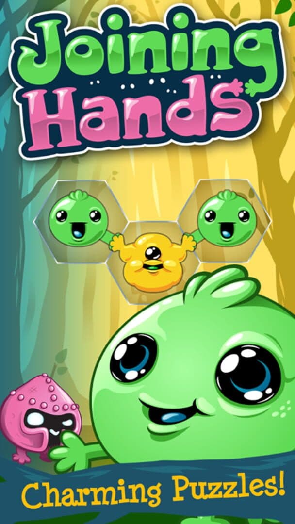 In Joining Hands the player places creatures named 'peablins' on a board of hexagons. Each peablin has 1 to 6 hands each; when two peablins are adjacent to each other, they join hands. If all hands of a peablin are joined, the peablin is happy. But there are other kinds of peablins -- some can move their hands, some cannot; some cannot be moved at all; some are only happy if they have no neighbors, while others scare adjacent peablins. The game contains over 150 boards, with all kinds of shapes and restrictions. The goal of the game is to place the peablins so all their hands are joined (if possible, collecting stars in the process).