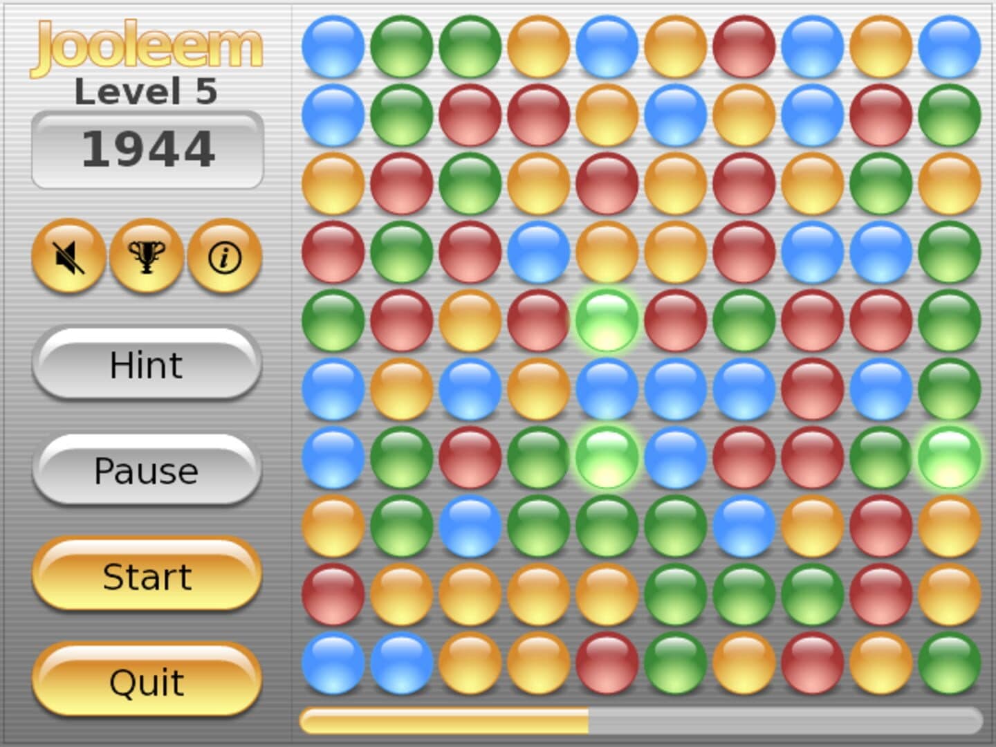 Jooleem is a simple yet extremely addictive puzzle game. There is only one rule: click on four marbles of the same color that form a rectangle. Time is constantly running out, but you can earn time (and points) by forming rectangles. The larger the rectangle, the more time and points are won. Jooleem is free and open source software.