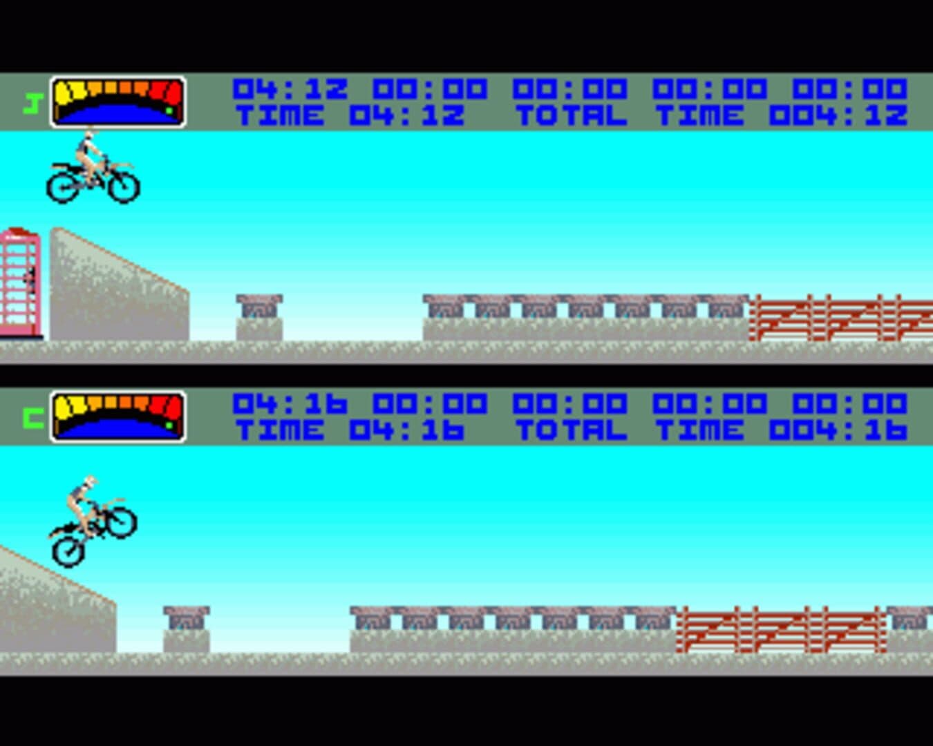 Kikstart 2 is a motorcycle trials racing videogame released for the Amiga, Amstrad CPC, Commodore 64 and ZX Spectrum. It enjoyed more success than its predecessor, Kikstart. The game allowed 2-player simultaneous (via a split-screen facility) or 1-player, vs-computer play. The game mechanics were copied into other games too, like the Game Boy game "Motocross Maniacs". The basic premise of the game is to control a bike using acceleration, braking, "hopping" and "wheelies" to navigate across a course of various obstacles, from ramps and gates to telephone boxes and tyres. The game was based on the BBC Television series Kick Start. An enhanced version was released for the Commodore 128,[1] one of the few native mode game titles for that computer. Source: https://en.wikipedia.org/wiki/Kikstart_2