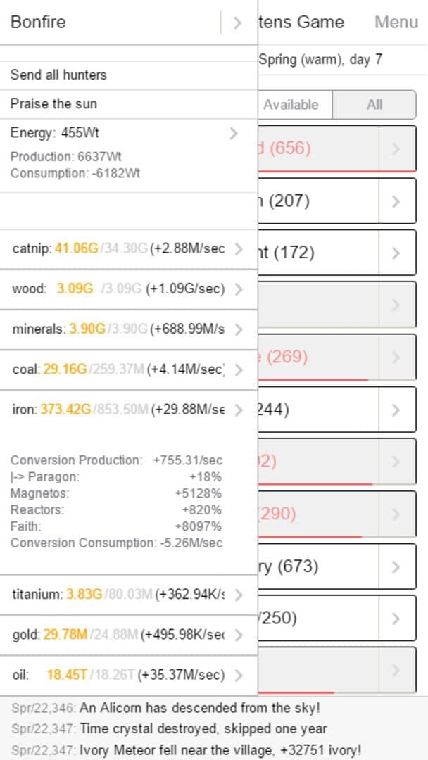 Kittens Game is a village simulation text game. You manage a village of kittens as they acquire resources and unlock new technologies. Over 30 different buildings, 50+ resources, hundreds of technologies and upgrades. No ads or micro-transactions!