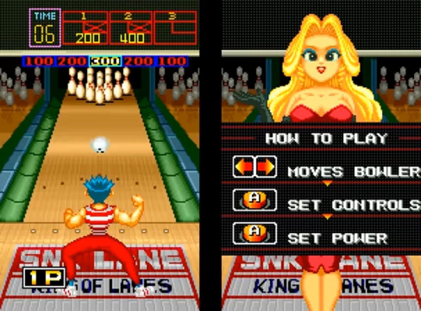 League Bowling is an arcade game released in 1991 by SNK for the Neo Geo console and arcade systems. The game was unique in that it was the first arcade to put emphasis on bowling. The players controls characters with red and blue hair and can select balls from 8 to 15 pounds.