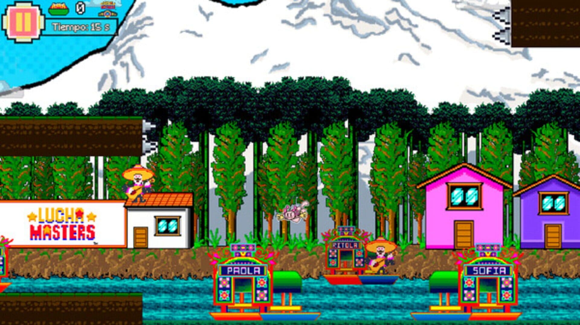 Lucha Masters StickerMania is an action and platform game, you will play with Lucho, a small axolotl with a big dream, be a Luchador. Lucho meddles in a new problem, mistakenly releases the god of jokes Mexica, a coyote, the god Huehuecoyotl, who for fun makes a joke: Destroy reality. You will enter a world of video games and you will visit several cities in Mexico to prevent the Coyote's plan. You will not be alone in this adventure, you will be able to play with professional Wrestlers such as the Legend Octagon , the Son of Octagon, Coco Rojo Segundo, Dr. Karonte Jr. and many more. Rudos and Técnicos come together to stop this threat. Face monsters like the Mummies of Guanajuato, the Witch of Catemaco, the Vampire of Guadalajara, La Llorona and many more. Will you have enough courage to stop a god, become a Luchador and eat many chilaquiles? Get ready to be a Lucha Master.