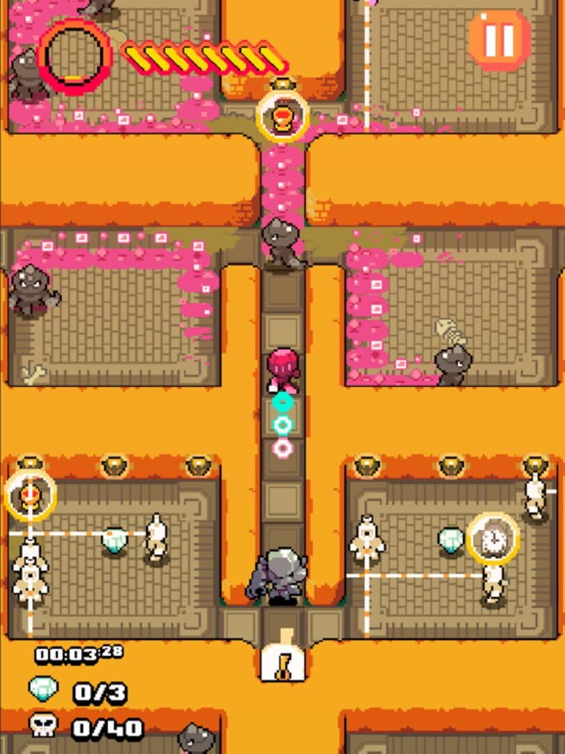 In MAZEMAN, you will start only with the main hero… MAZEMAN. But there are 23 more heroes waiting to be unlocked, each one with a unique ability. A robot whose mission is to bomb the maze to its foundations; a time-stopping time traveller that seems haunted by its past; a talented escapist that will force you to think with portals; a psychic girl willing to prove to her tribe that she’s just as capable as the boys… but at what price? All of the characters add their own twist to the game experience thanks to their unique abilities. A specific floor may be almost impossible with one character and incredibly easy with another. So you can strategize which character may be the best fit for each level... or just play with the one that fits your playstyle the best! But be prepared for a Maze that’s dangerously equipped to destroy you, as it packs a myriad of creatures, bosses, and mini-bosses. You must traverse all the mazes with their unique architectures and visual styles, fighting or avoiding the monsters while looking for the key that will open the door to the next maze. Luckily, the Maze holds some helpful power-ups too!