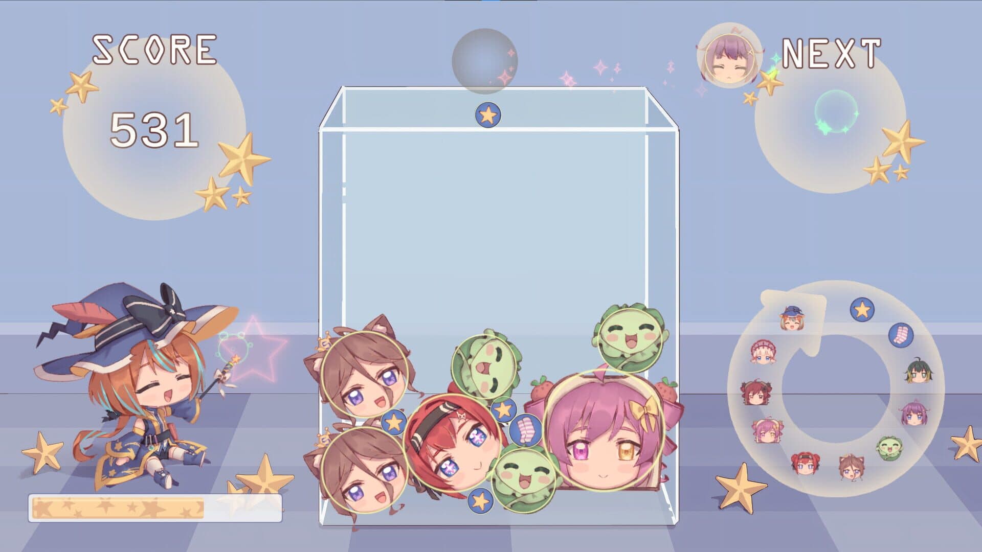 Meteora's Mystic Merge is a puzzle game based on the famous Suika game. Instead of fruits, it uses a variety of VTubers as assets. It features currently only a new game mode with a playable character (namely Meteora) who has a special ability, and a classic mode coming soon, which plays a lot like the original though with some changes. This game is similar to the cult game "2048" as well as "Suika Game" which is a switch exclusive.