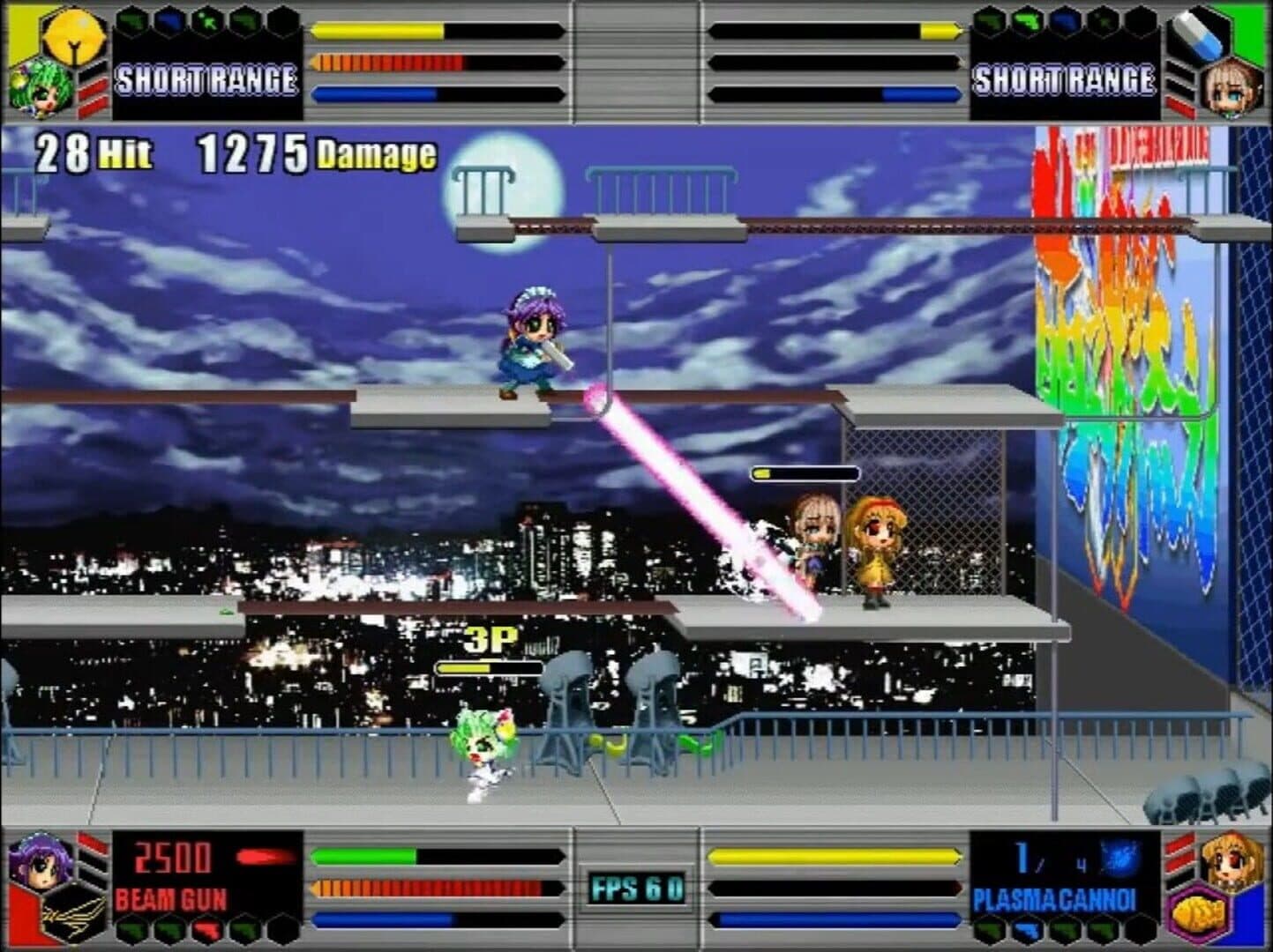 A doujin game created by the now defunct Japanese team Make Of Enjoy (M. O. E.). This game is a platform fighting game featuring characters from various Manga and Visual Novel franchises, as well as two original characters. This game focuses on projectile shooting combat, and features character-specific specials and supers.