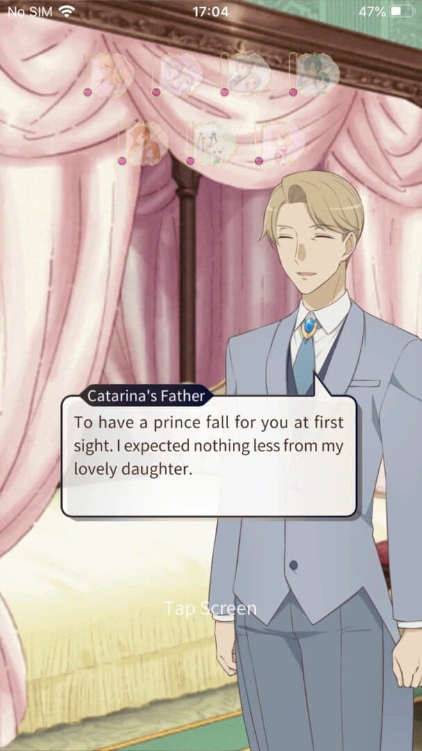My Next Life as a Villainess: All Routes Lead to Doom! ~comes to StoryMe!~ is a collaboration between ASMIK ACE and StoryMe, released in April 5, 2020 for Android and IOS platforms. The game officially received an English release for the world-wide version of the StoryMe app on Sept. 16, 2020. Each episode of the game was released alongside the animation broadcast. It has 19 episodes, with the first 12 being a retelling of the anime's story, and the last few being the respective 7 endings of the capture targets.