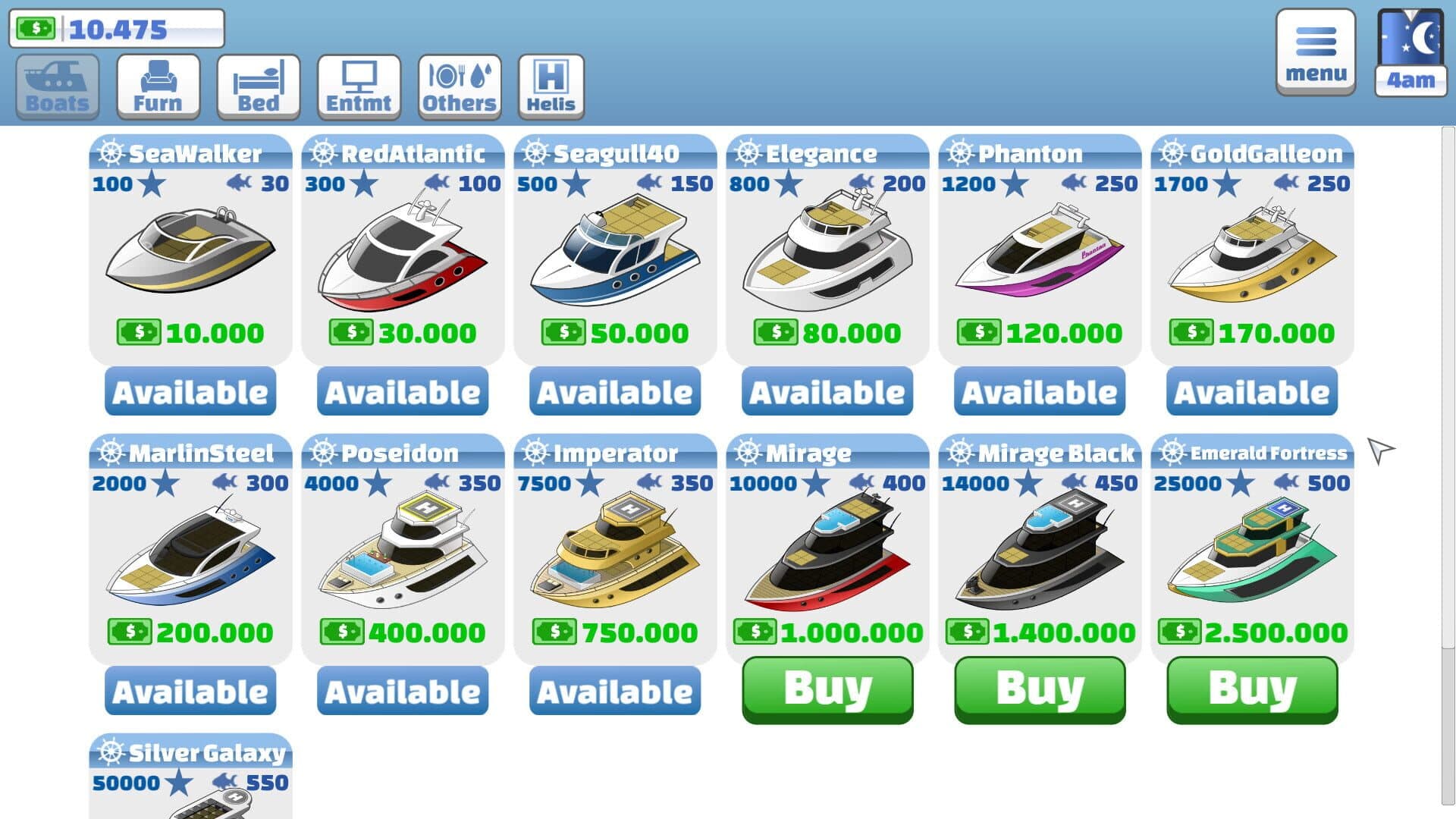 Buy yachts and customize the interior with furniture, besides fishing around the world!