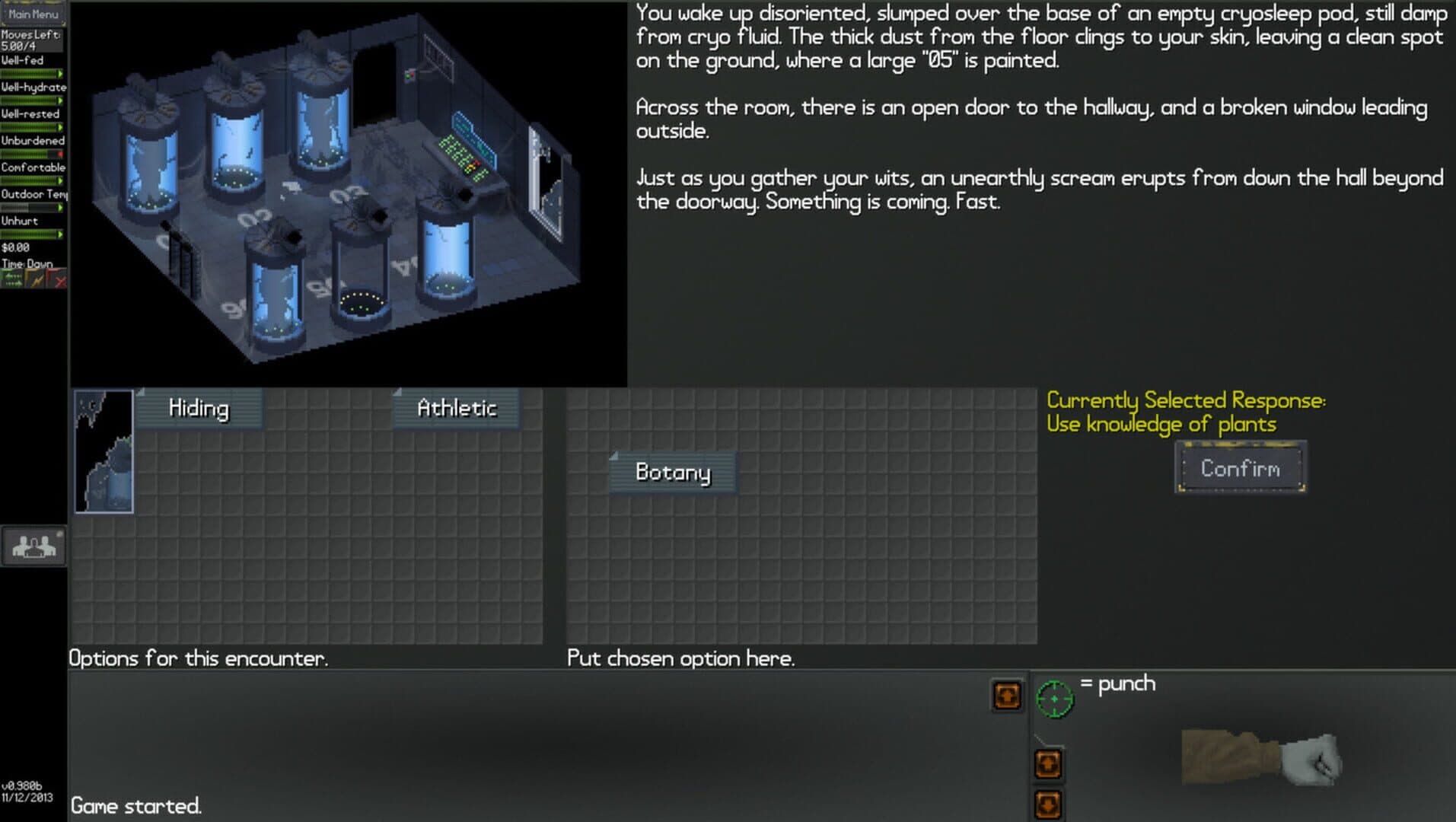 NEO Scavenger is a game where you must survive in the wasteland long enough to figure out who you are. Each turn, you must decide where to go, how to scavenge for supplies, and how to deal with anything and anyone you encounter. And with each passing minute, the pit in your stomach grows, your dehydration worsens, your muscles tire, and your body temperature drops in the cold autumn air. Choose your starting abilities carefully, because they and your wits are the only tools you have in the apocalypse!