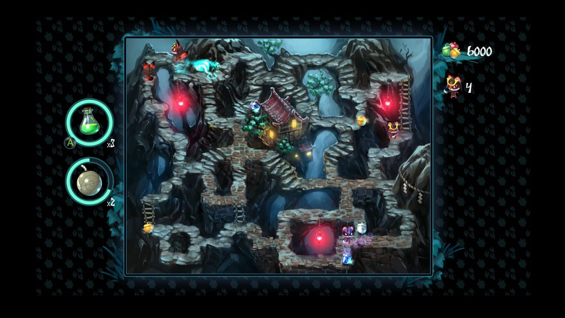Trace a safe route to help a ninja squirrel pick up power-ups and avoid enemies in a modern Pac-Man.