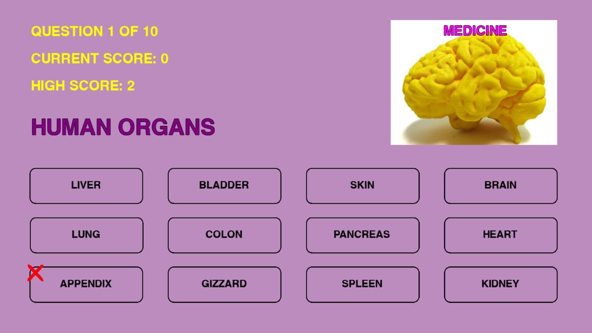 Odd One Out 2 is a simple, fun word puzzle game with 12 different subjects that can be selected on the rounds screen (for example Sport & Leisure). Each subject has 10 puzzles and each puzzle is a different category within the overall theme – for instance Water Sports or Famous Racehorses. For each category there are 12 answers on the screen but one does not belong in the category and is the odd one out. Simply find the answer in each category that does not belong. There is no time limit and each subject can be played as many times as you need to reach a great score!