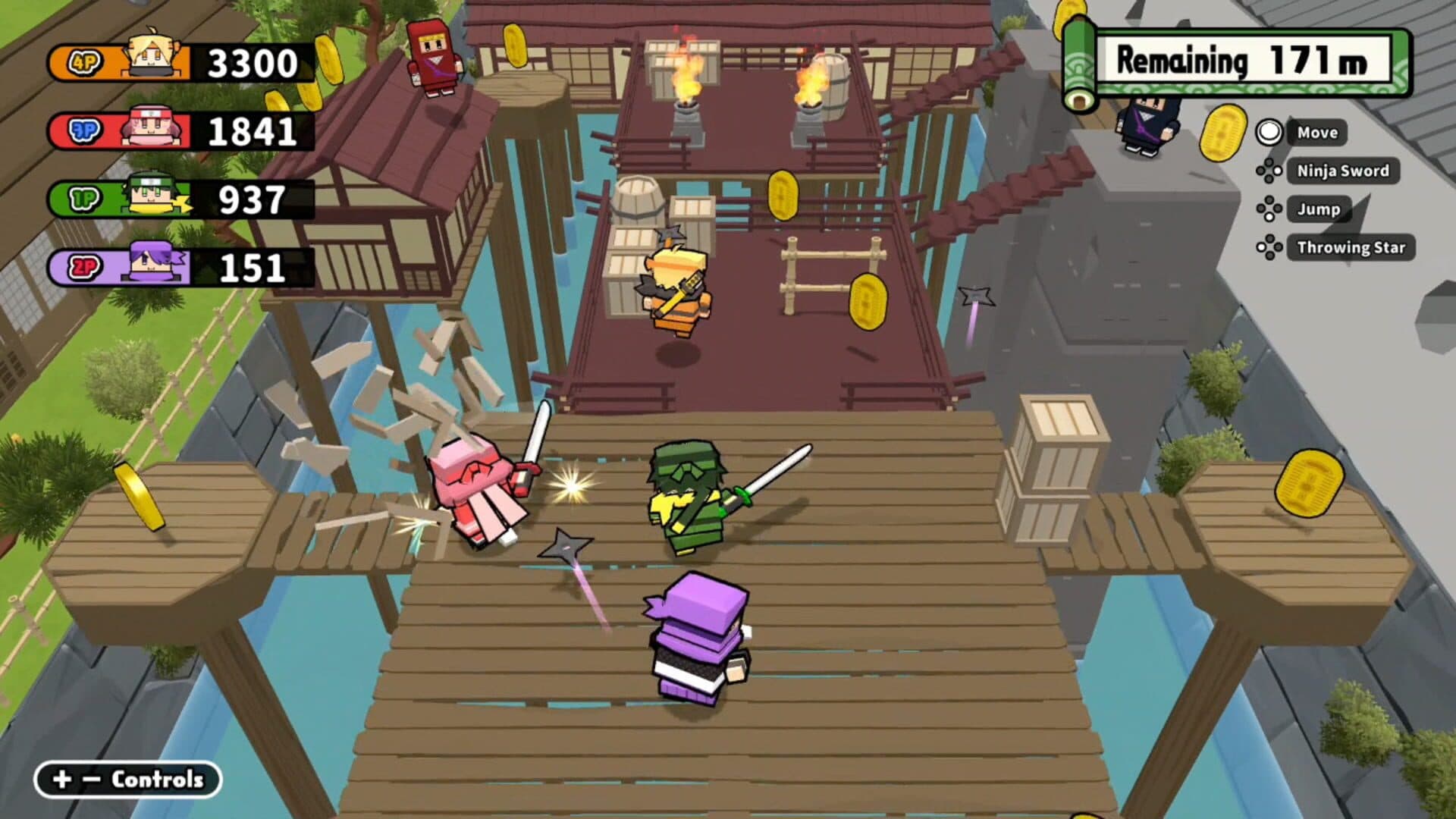 Take on our top-secret training games and transform into the ultimate ninja! Pass around Joy-con controllers and play with up to four players! We've got every tool a ninja needs: throwing stars, ninja swords, grappling hooks, and even flying squirrels!