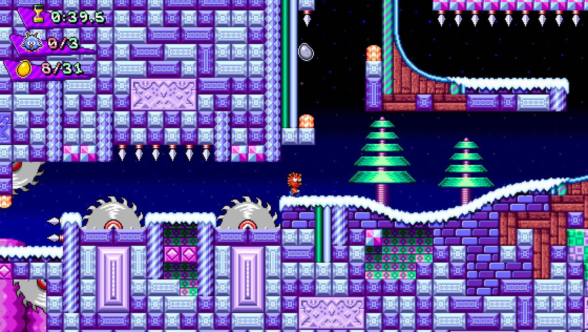 Dr. Proventriculus is snatching up the Chickabirbs! Help Panic blast through over 50 stages of topsy-turvy, spike-laced, slime-drenched, buzzsaw-filled deathtraps to rescue them! And remember, there are no rings...