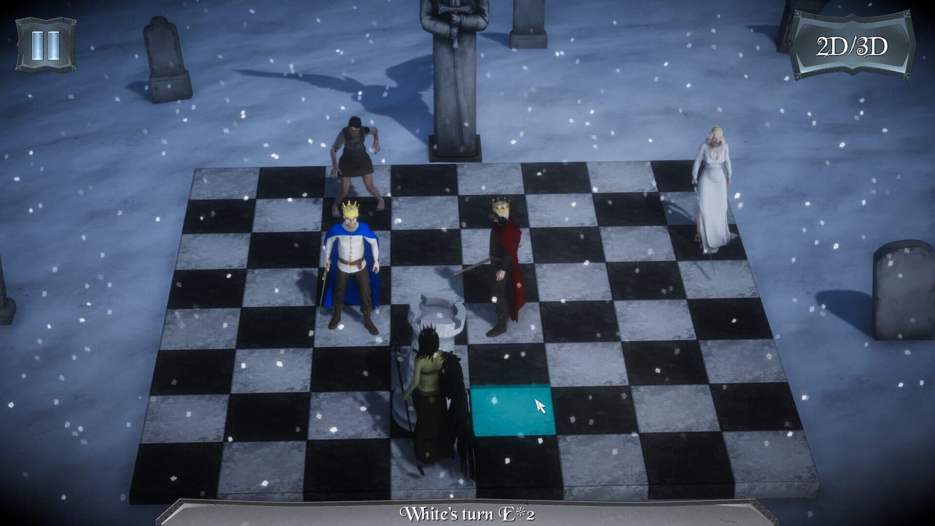 A 3D game based on chess, in the style of Battle Chess. What makes it a unique game is its mechanic: When a Black (undead) piece captures a White piece, that White piece turns into a Black one!