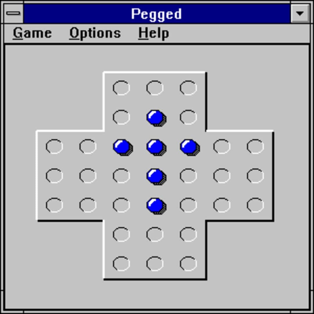 Pegged is a puzzle video game developed by Mike Blaylock and published by Microsoft in their Microsoft Entertainment Pack for Windows for Windows 3 in 1990. It is a video game version of various layouts of peg solitaire.
