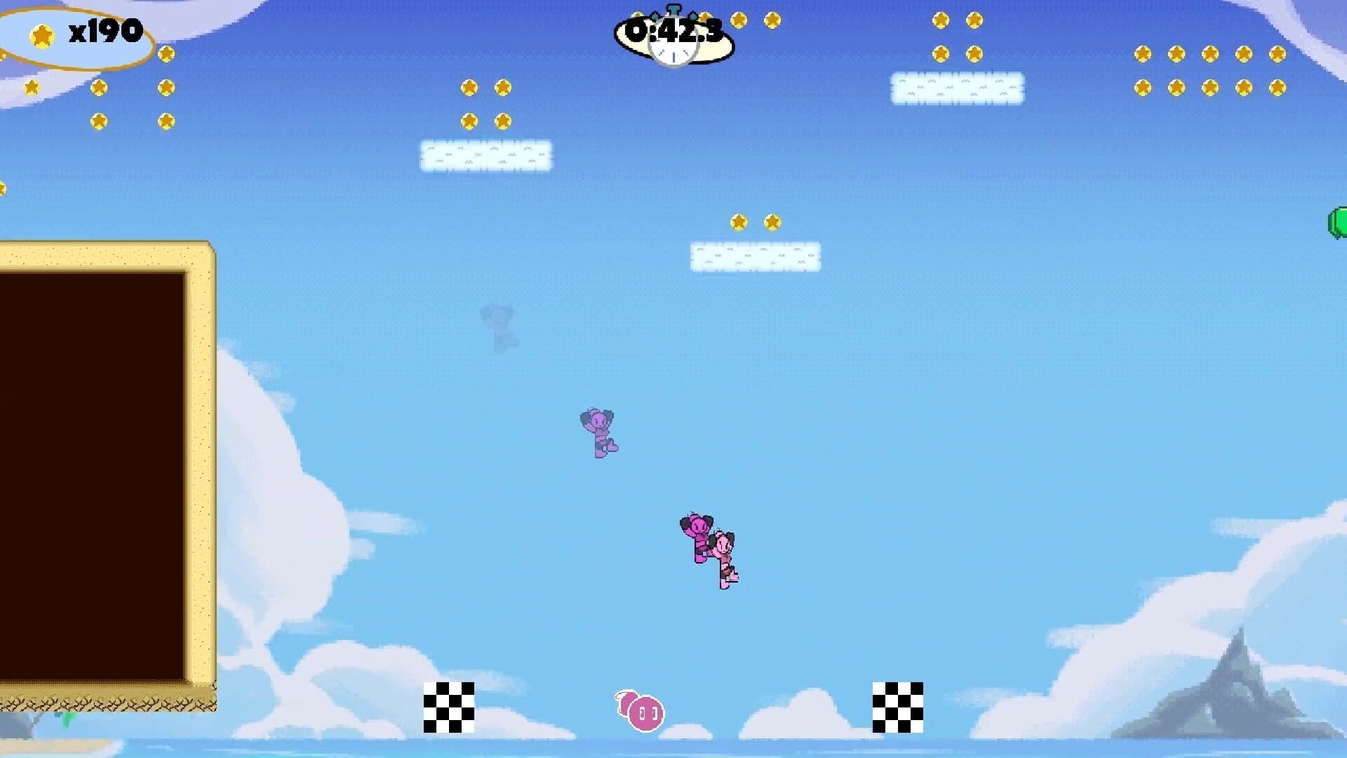 Personal Best is a Momentum Platformer. The player must navigate through the various paths that make up each level on their way to the Stopwatch at the end. However, they have a limited amount of time to progress, and when that timer runs out, their score (gained via collecting Charms throughout the level, as well as just making their way to the end) are tallied up and converted into EXP and Points. They're then sent to the Upgrade Menu where those points can be used to purchase upgrades, allowing the player to better navigate and further progress in the level.