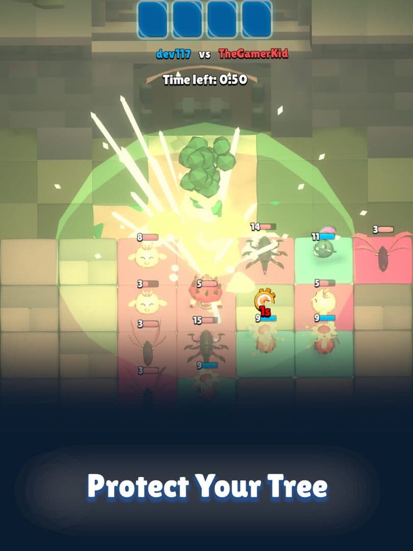 Plant the seeds of victory! Fill the board with plants, while your opponent does the same as they clash. The more plants, the more fun, complex, and intense the tactics get. Watch out and don't get ninja'd! Rush, control, turtle, econ, or something weird and unexpected - how will you plant?