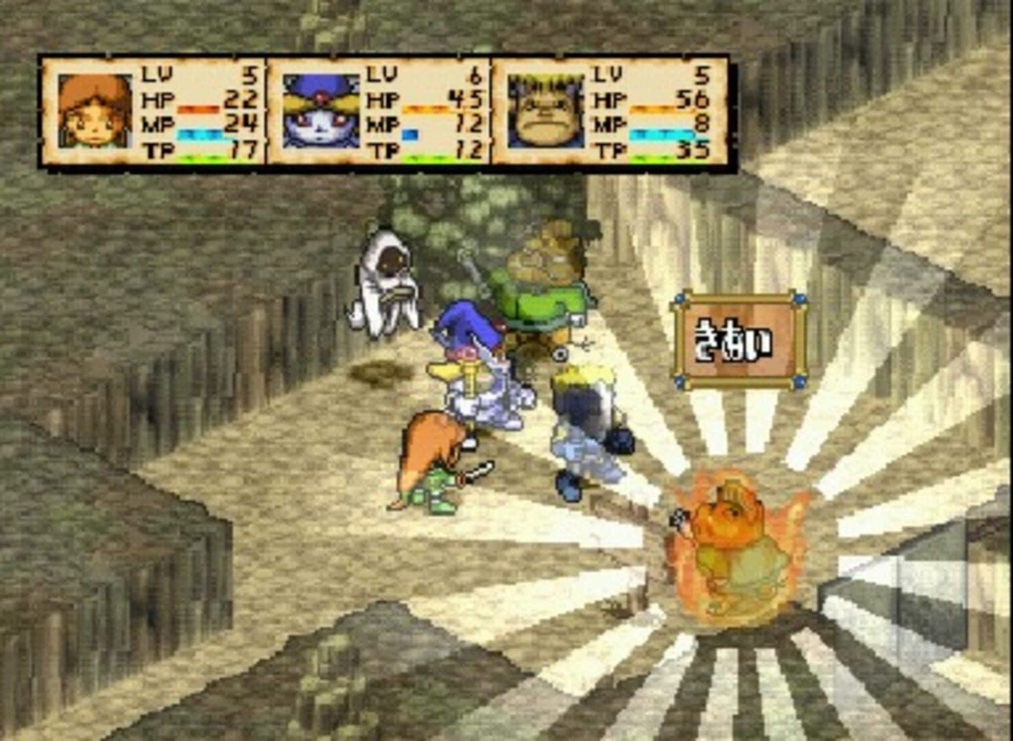 Poporogue is the sequel to SCEI's 1996 hit in Japan Popolocrois (also called Popolocrois monogatari). The battles in this game are not random, you can see the monsters on the screen and avoid them. What's more is that if you choose to escape from a battle, the monsters you ran from will chase you around the dungeon.