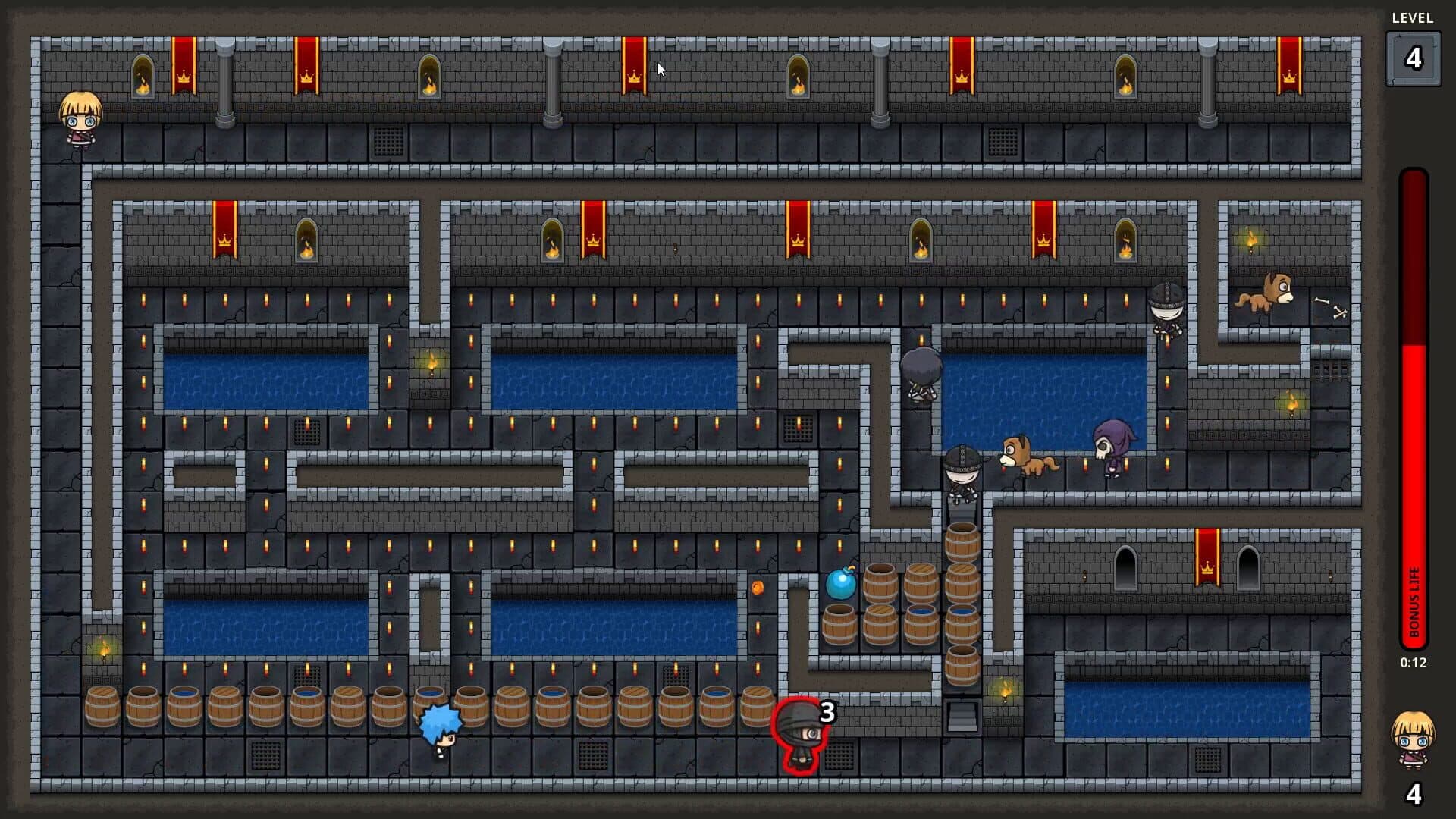 Run around the maze collecting coins while being chased by spooky monsters. Outsmart the enemies in 4-player co-op games, or play the versus mode as a monster to prevent the other team from stealing all the gold from the castle.