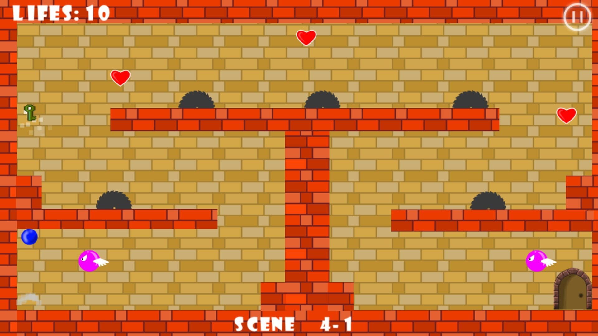 A game of "survive-room". Help the red ball save his girlfriend, who has been kidnapped by the green king, as he bounces through 50 levels while avoiding spikes and other obstacles. Players will have to master their control of red ball's speed and constant bouncing pattern in order to reach the end.