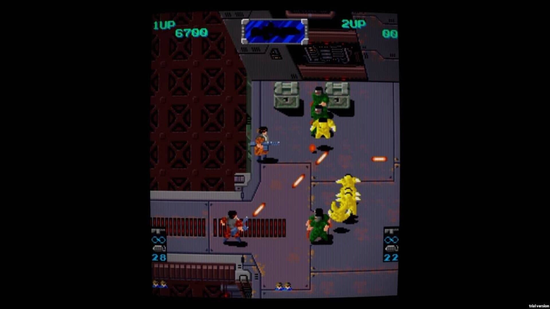 BAD DUDES: The Bad Dudes must pursue the ninjas through the streets of New York City, a moving big rig truck, a large storm sewer and much more, in order to save President Ronnie. JOE & MAC: Grab your club and get ready to go on a wild, prehistoric adventure with the Cavemen Ninjas - Joe & Mac! Help Joe and Mac, two cavemen who fight against enemy cavemen and dinosaurs using prehistoric weapons. HEAVY BARREL: Fight through the enemy's army and collect pieces for a secret weapon to destroy their underground artillery base. EXPRESS RAIDERS: Save the Old West, with your rifle and your horse, from thieving Train Robbers. SUPER REAL DARWIN: The inhabitants of the planet Lakya unwittingly unleash the planet's life force known as Evol. As the released Evol drifts from planet Lakya, it is received by the inhabitants of the nearby planet Cokyo; the people of Cokyo initiate the Shlohe project, a plan to use their captured Evol to develop advanced biologic ships and weapons to invade planet Lakya. The inhabitants of Lakya retaliate the Cokyo invasion by using their own evolving fighter ships. GATE OF DOOM: A classic multiplayer action RPG for one to two players. Originally released in 1990, and a noted classic arcade title of the 90's. SHOOT OUT: Stop the criminal gangsters and save the civilians in this action-packed shooter. SUPER BURGERTIME: Play as Peter Pepper Jr. and complete the burgers, but watch out for Mr. Hot Dog, Mr. Egg and the dangerous Mr. Pickle!