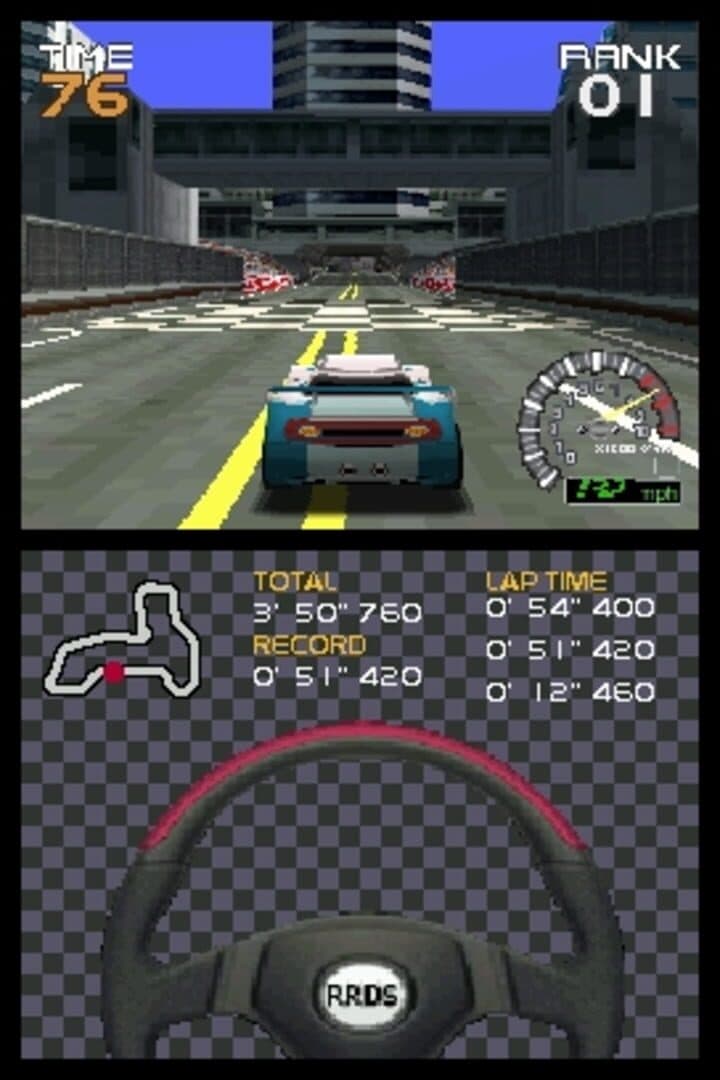 The Ridge Racer series returns with an all-new racing experience on the DS. The DS version lets you control your vehicle using the handheld's touch screen and race in wireless multiplayer matches for up to six players. You can race on 20 tracks in three different locations, including the Ridge Racer cityscape, a Northwest course from Ridge Racer Revolution, and a desert area in the Southwest. With Ridge Racer DS, you can experience fast-paced racing action in the palm of your hand.