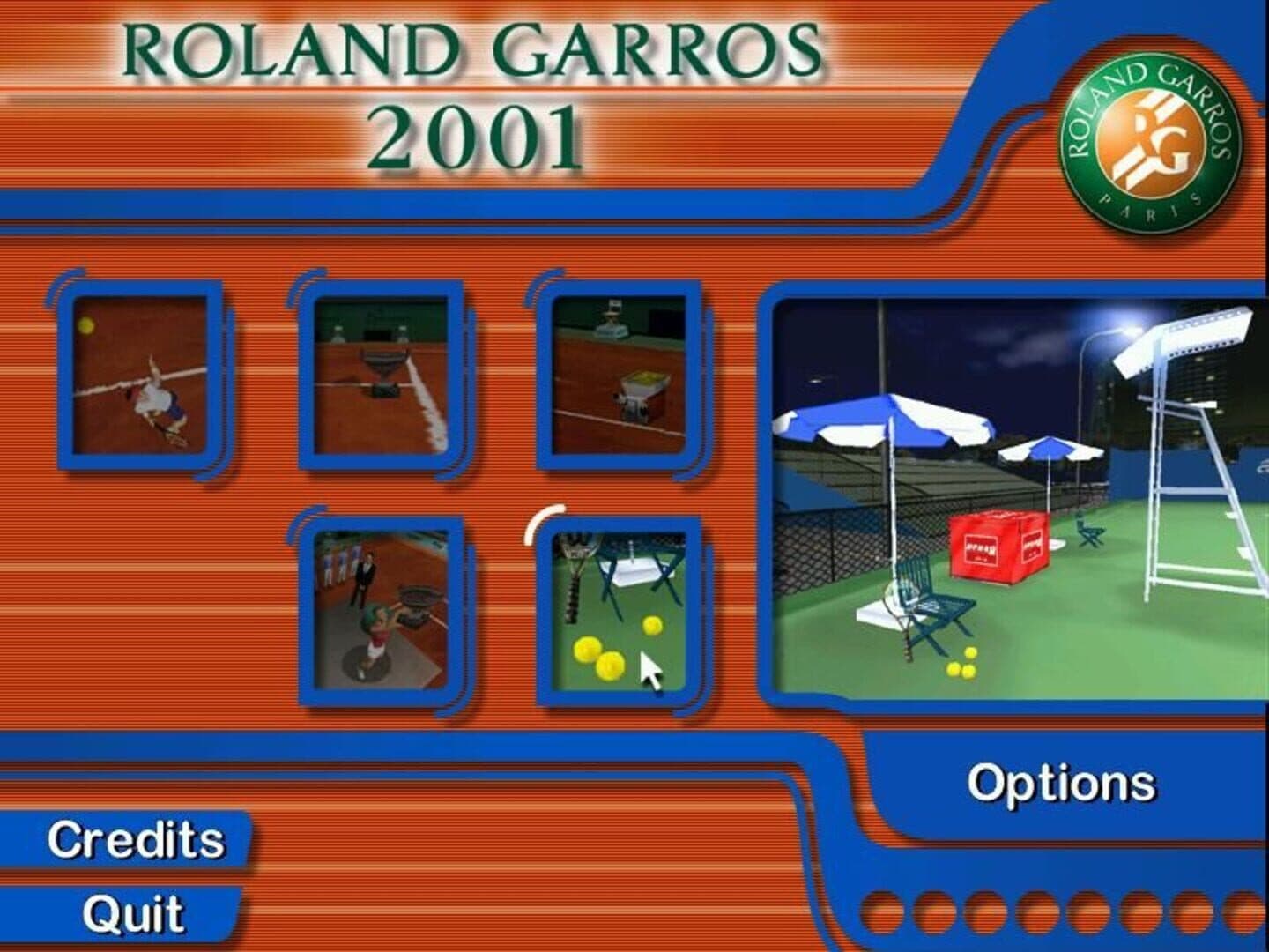 Roland Garros 2001 is a tennis game created by Caparace. The player can choose between sixteeen different players to play in 4 tournaments that includes Roland Garros and the US Open.