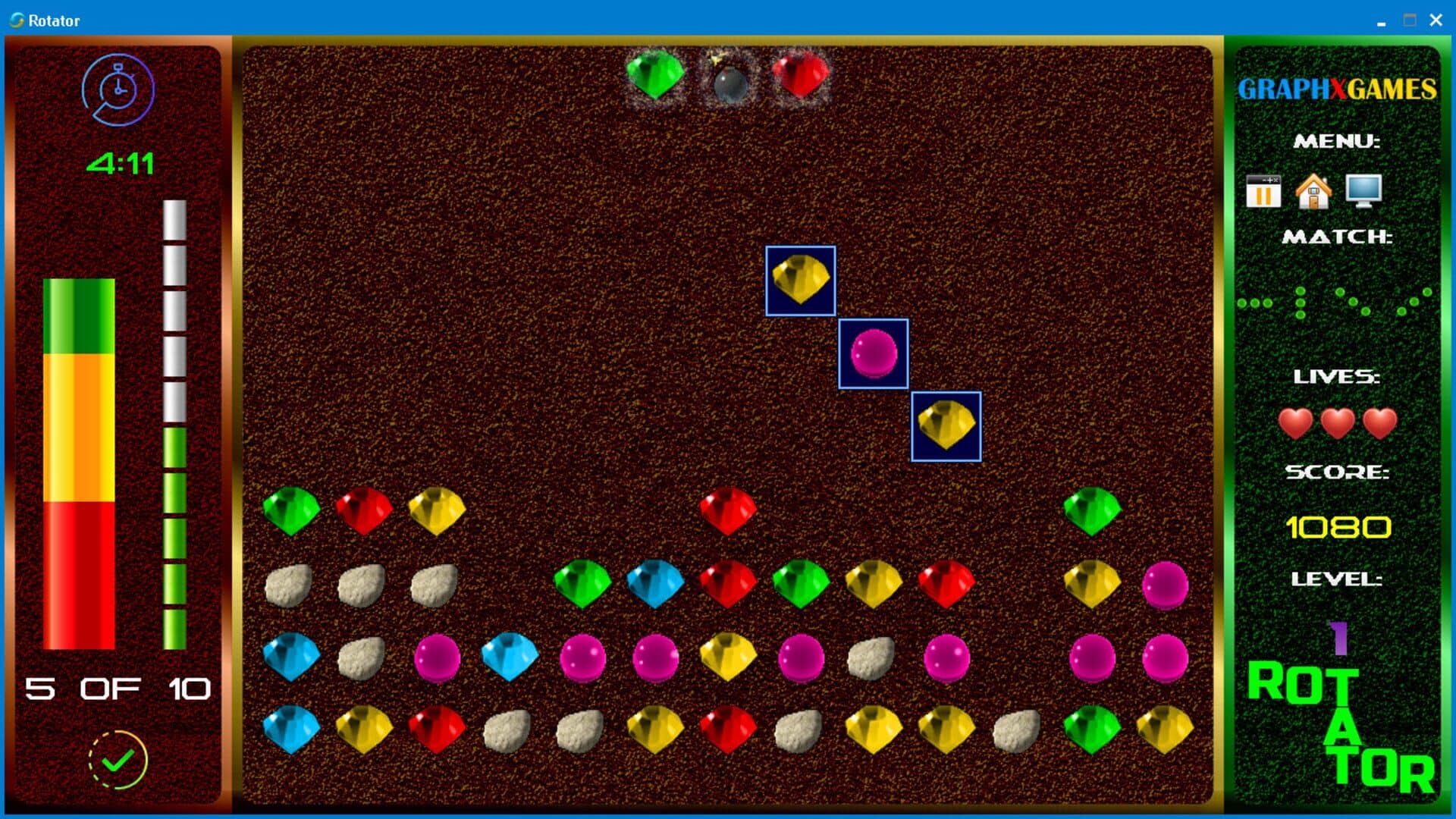 Rotator is a casual 2D puzzle game based on groupped diamonds. Each falling diamonds group can be move, rotate, scroll and fast drop. Experience endless gameplay with unique puzzles every day in a beautiful game filled with different surprises, explosions under magic music and sound effects.