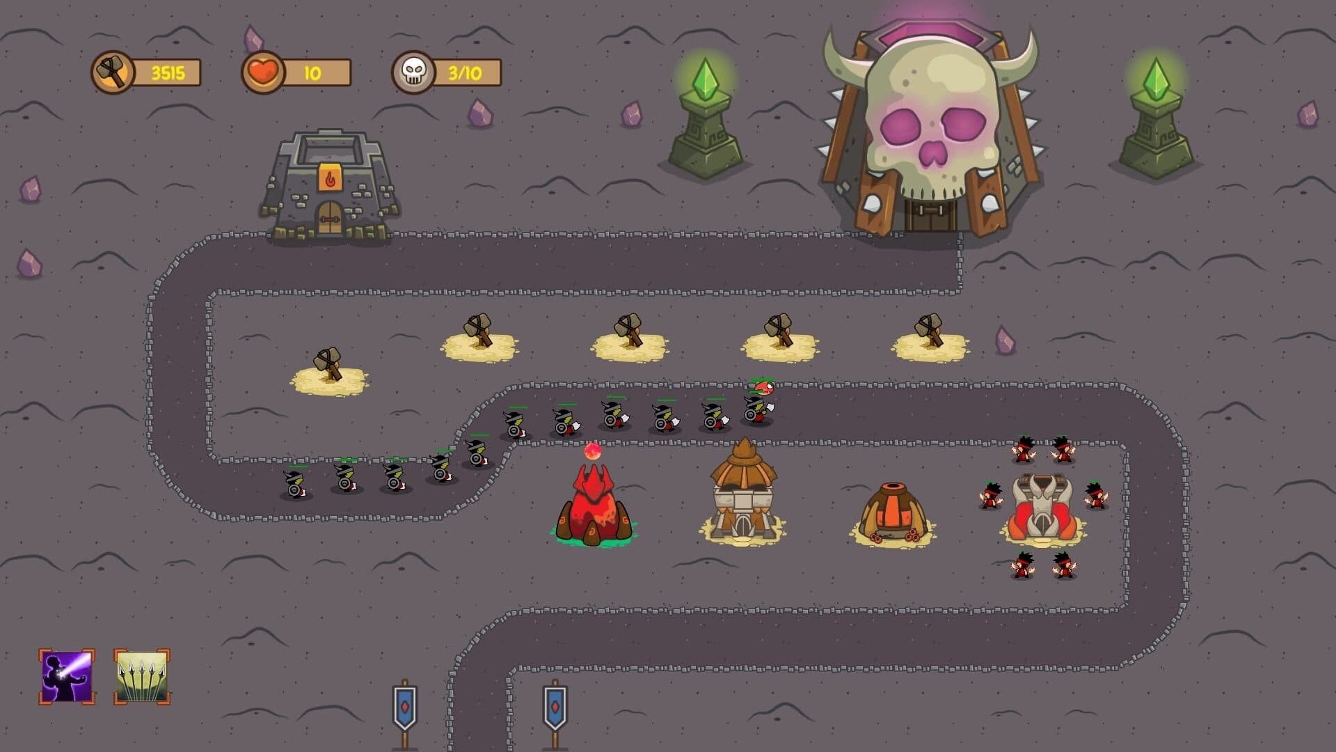 Royal Assault is a real-time tower defense game set in a medieval fantasy setting. Your people are under attack and you must fend off the invading armies by building towers. Choose the quick-firing Archer Towers to quickly dispatch flying enemies, the hard hitting Mage Towers to penetrate the armor of your toughest foes, the explosive Artillery Towers to do area damage to all ground-based enemies, or opt to build Barracks instead which train soldiers who can stop enemies in their tracks.