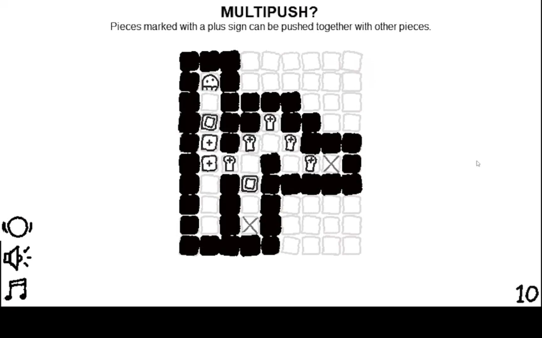 Use arrow keys to walk, R to restart and Z to undo Push blocks & chess pieces onto the grey Xs Chess pieces will try to make your life harder, this'll be explained better in-game Wow
