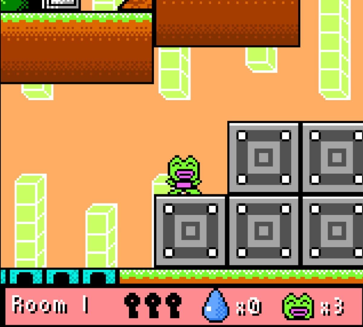Adventure through rooms of key oriented levels as a bouncing frog who can also roll up walls, and try to escape!!! The Dinosaurs were chaotic and evil They've destroyed their own planet and came in to Earth and killed all humans. Only one human survived, but they transmuted it into a frog!!