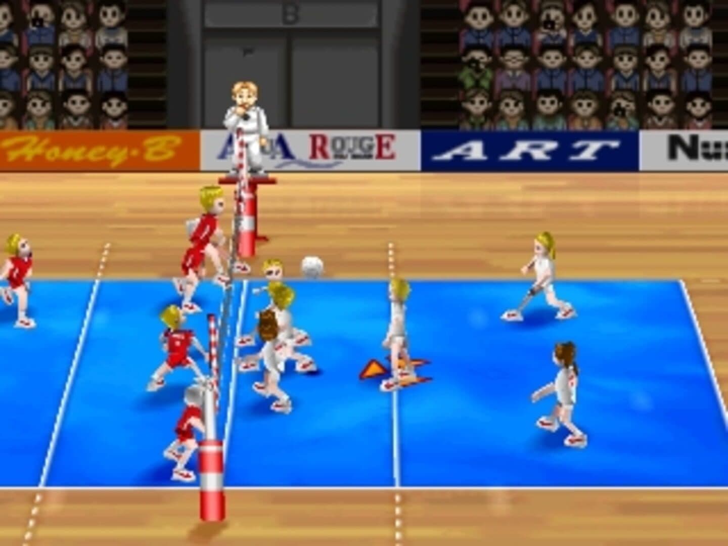 Break Volley is an indoor volleyball game with cartoon graphics. The game features male and female teams and 12 national teams. The game supports up to four players at once.